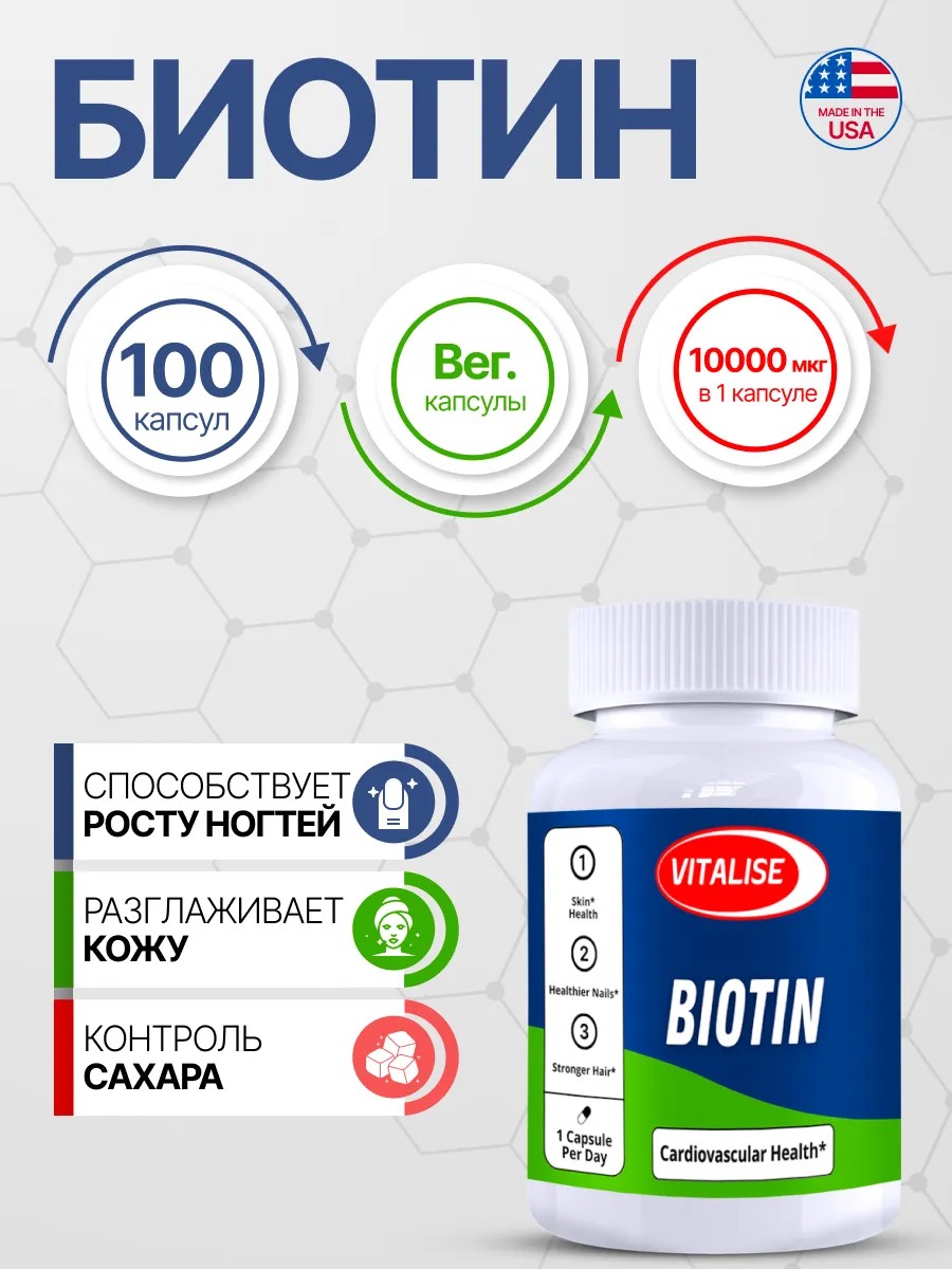 Биотиналь полезен как для женщин, так и для мужчин, особенно в периоды повышенной нагрузки или стресса, когда организму требуется дополнительная поддержка. Наш продукт изготовлен из высококачественных ингредиентов и не содержит искусственных добавок, что гарантирует его безопасность и эффективность, а так же иммет дозировку выше 5000мкг.