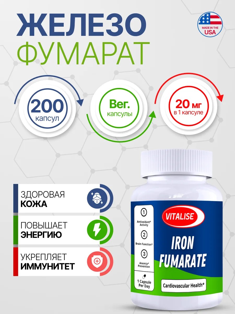 VITALISE Железо фумарат 20мг 200 капсул