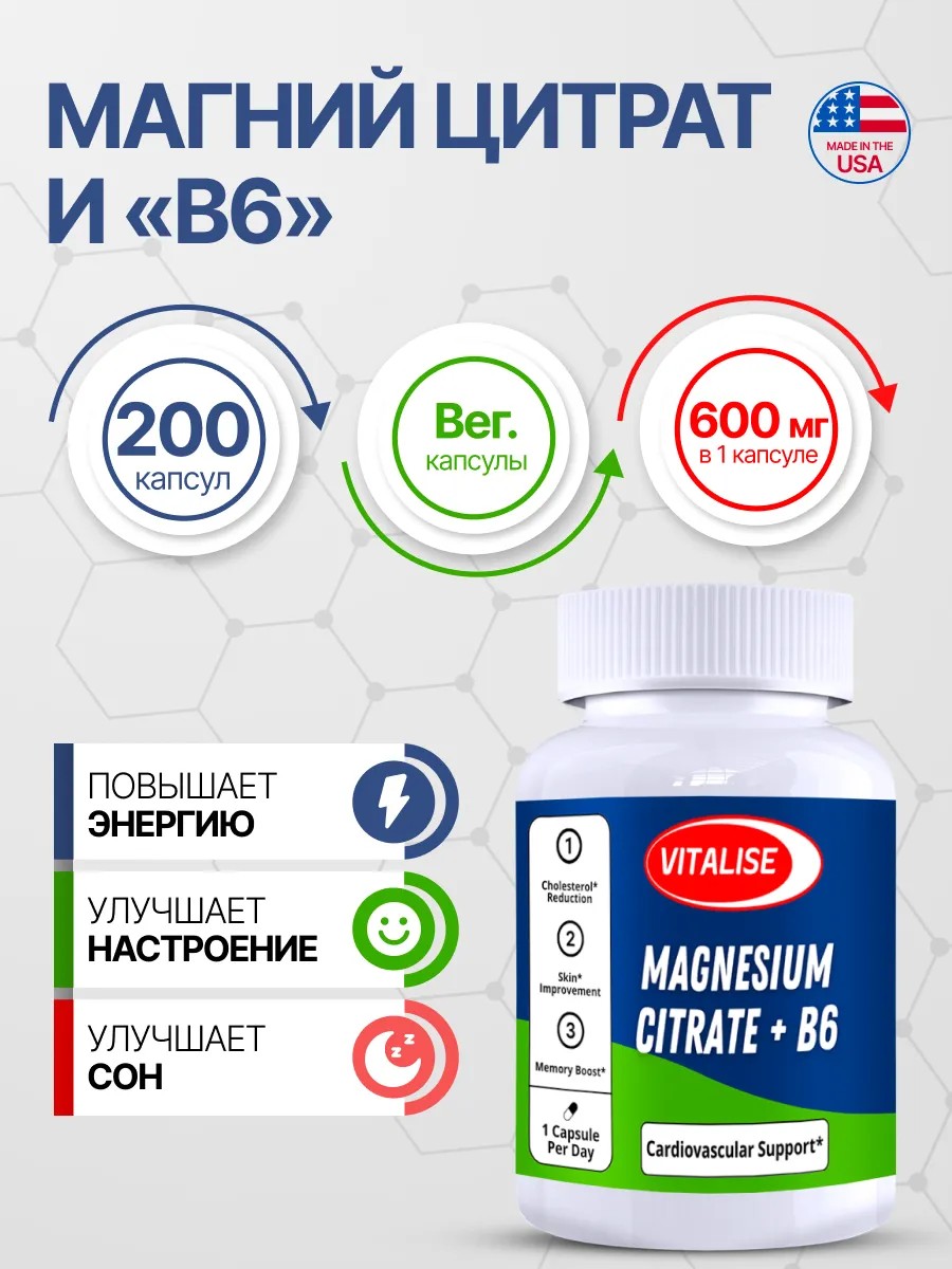 Откройте для себя преимущества цитрат магния с витамином В6 (б6) с нашими высококачественными добавками! Магний и витамин В6 — это два незаменимых элемента, которые играют ключевую роль в поддержании общего здоровья и благополучия. Magnesium citrate помогает снизить усталость, улучшить настроение и поддержать нервную систему.