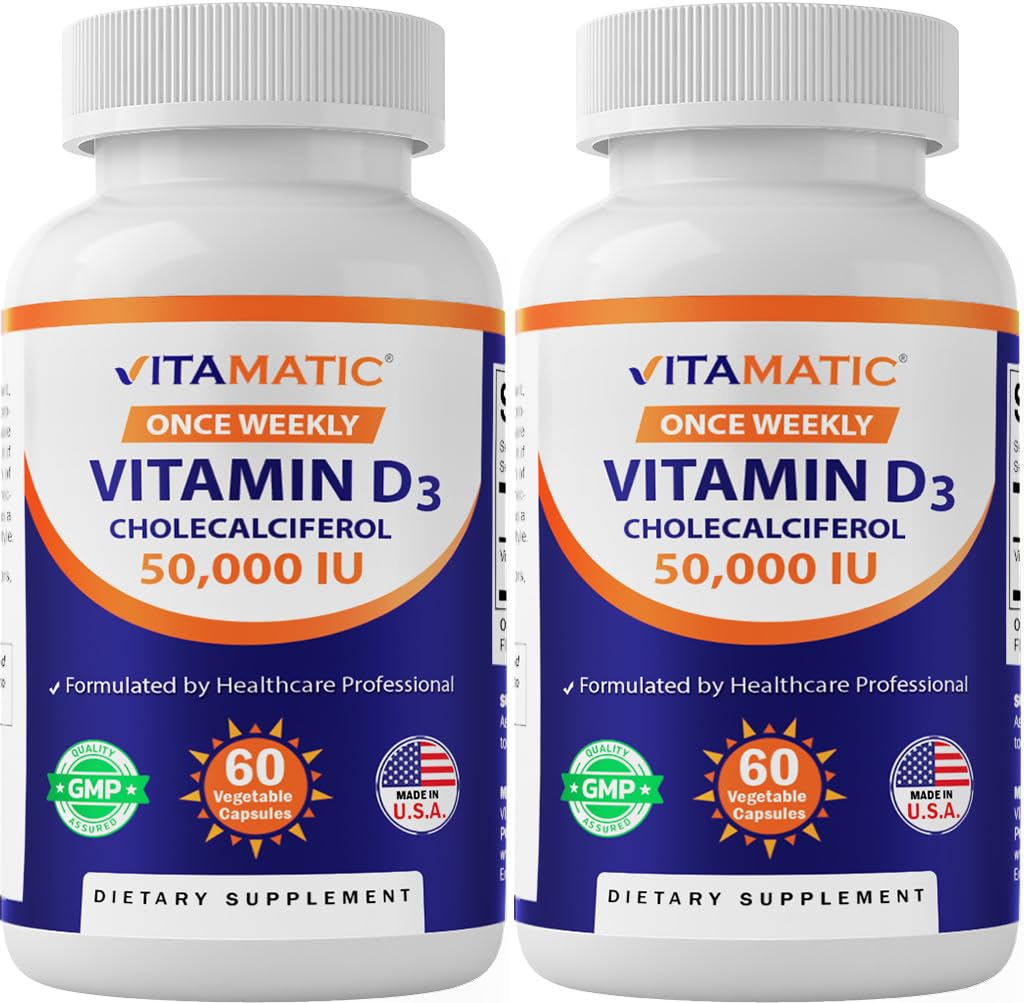 Made in USA - Free of sugar, starch, sodium, yeast, corn, wheat, egg, artifical colors, flavors and preservatives. All the benefits of vitamin D without the risk of unprotected exposure to UVB rays. Safe and natural way to get this much needed vitamin. Vast majority of individuals are deficient of Vitamin D, a life-sustaining vitamin. Vitamatic Vitamin D3 is a very important nutrient for overall healthy muscle function, increases calcium absorption for stronger bones, teeth, and immune support. Once Weekly dose helps with adherence , 60 weeks supply (more than 1 year).