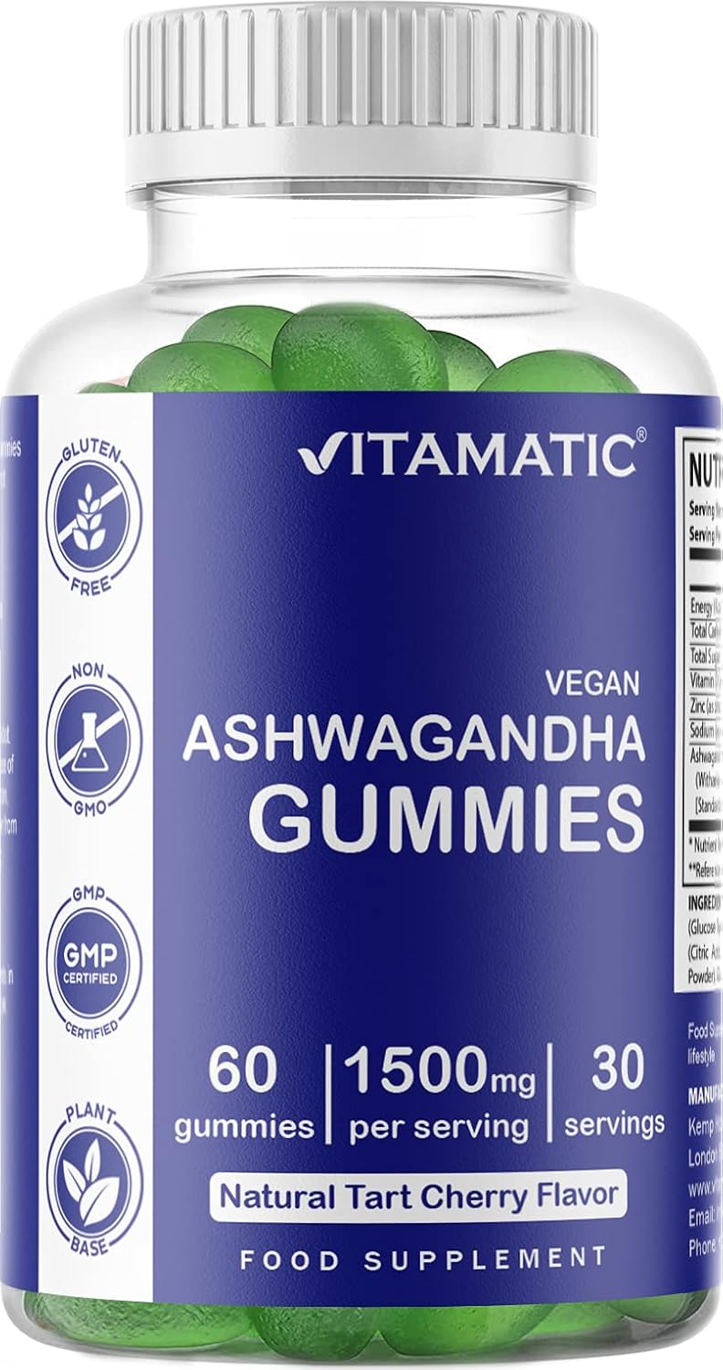 Vitamatic Ashwagandha Gummies 1500mg per Serving - 60 Vegan Gummies - 3% Withanolides