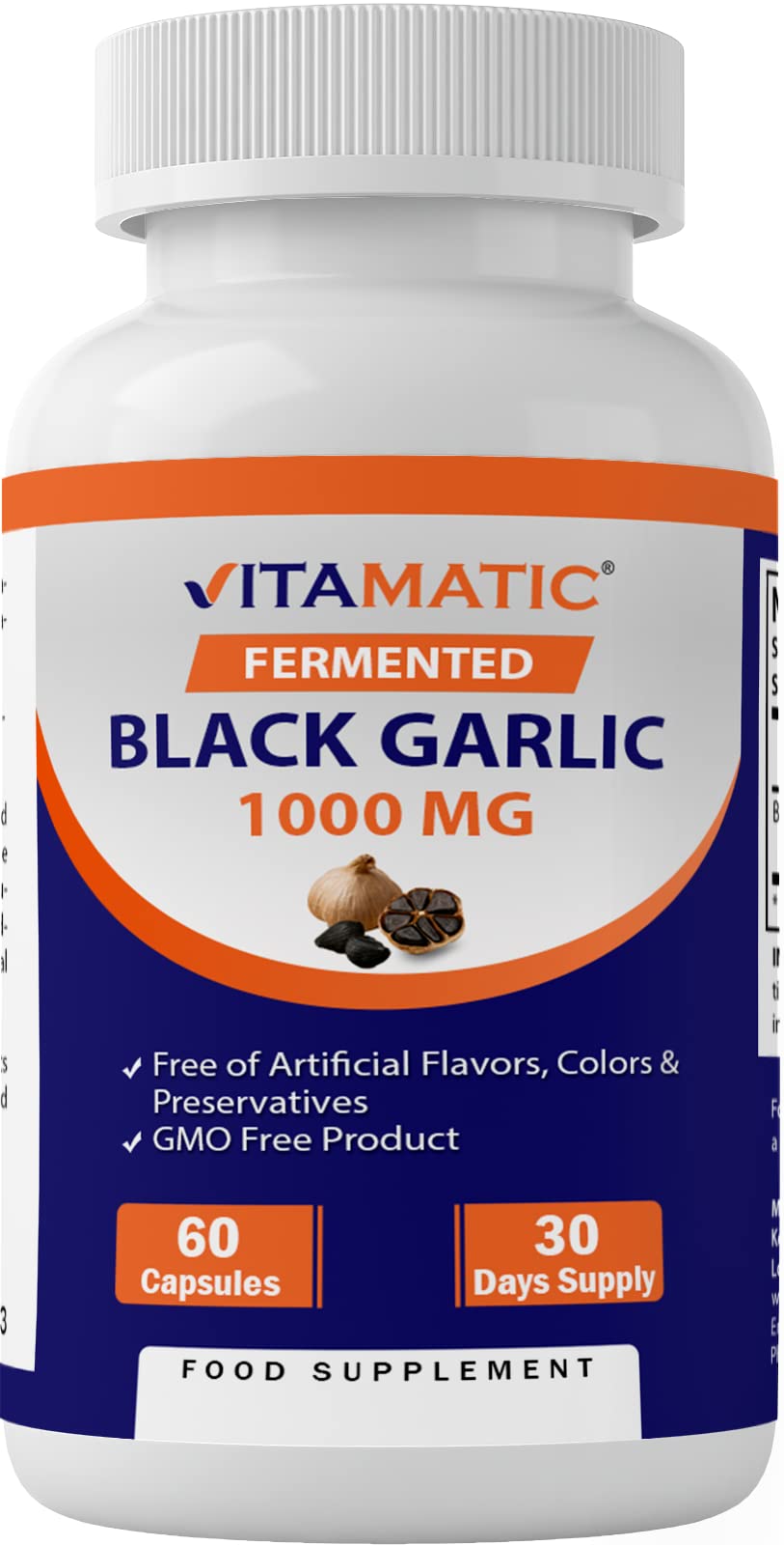 Vitamatic Fermented Black Garlic Extract 1000 mg 60 Capsules - Non-GMO, Gluten Free - Antioxidant and Cholesterol Support