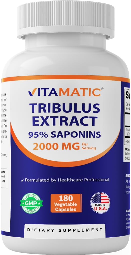Vitamatic Tribulus Terrestris for Men - 2000 mg per Serving - 95% Saponins - 180 Vegetable Capsules - Made in The USA - Gluten Free & Non-GMO