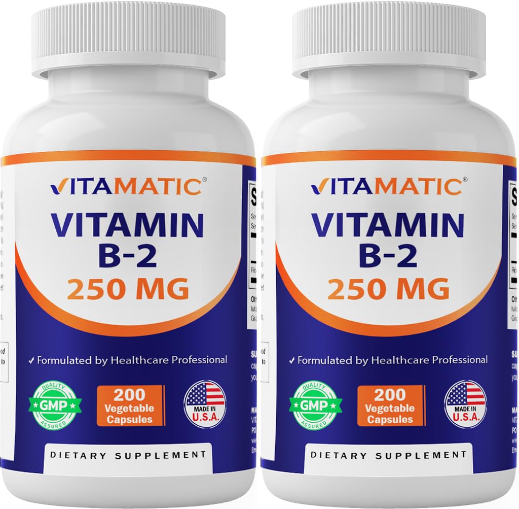Vitamatic Vitamin B2 (Riboflavin) 250 mg - 200 Capsules - 2 Pack
