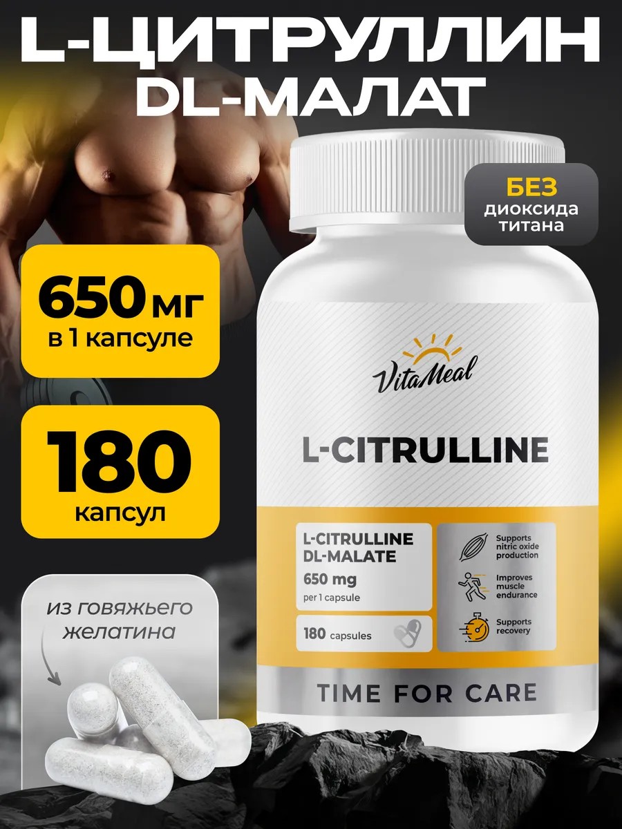 Цитруллин от VitaMeal - идеальный источник цитруллин малат dl-малата 2:1 в капсулах. Эта аминокислота не только расширяет кровеносные сосуды, снижает артериальное давление и нагрузку на сердце, но также улучшает кровоснабжение мышц, делая их более рельефными. Благодаря форме соединения цитруллин малат с dl-малатом - солью яблочной кислоты, этот продукт помогает быстро выводить продукты распада мышечной работы. При регулярном употреблении цитрулин вы сможете тренироваться с более высокой интенсивностью, увеличивать рабочий вес и наращивать мышечную массу, достигая превосходных спортивных результатов. Кроме того, одна порция l citrulline обеспечит вам выносливость, поможет получить "пампинг", как гормон роста, и отличное восстановление после тренировок. Не упустите возможность улучшить свои спортивные достижения с помощью аминокислоты citrulline malate. Если вы цените своё здоровье и стремитесь улучшить свои тренировочные результаты, то наши продукты помогут быстро восстановиться после физических нагрузок, укрепить иммунную систему и сохранить мышечную массу. Так же для защиты мышц от разрушения во время тренировок, низкокалорийных диет и других факторов катаболизма. Мы предлагаем широкий выбор продуктов для здоровья и спортивной формы, включая спортивное питание в виде коктейлей и аминокислоты. Мы также предлагаем все необходимые продукты, чтобы помочь мужчинам и женщинам достичь своих целей по похудению, включая жиросжигатели для мужчин, таблетки для похудения для женщин. Наш ассортимент отличается широким выбором и высоким качеством продукции, которая поможет вам достичь желаемых результатов. Попробуйте наши продукты сегодня и почувствуйте себя лучше, чем когда-либо!