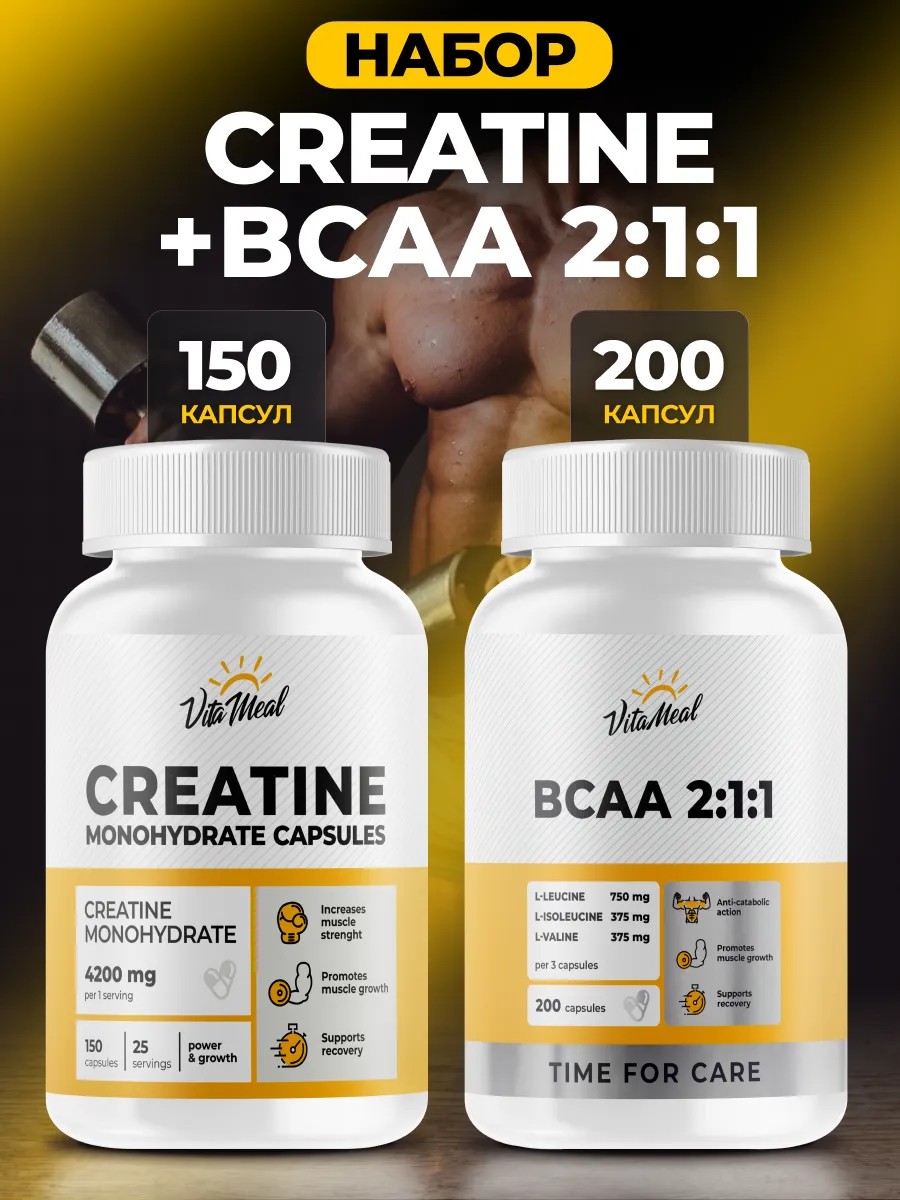 | Комплектация | CREATINE банка 150 капс - 1 шт; BCAA 2:1:1 банка 200 капс- 1 шт; набор |