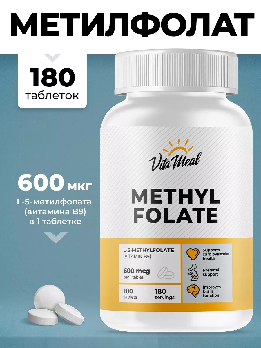 Methylfolate от VitaMeal - это витамины для женщин, источник витамина В9 (фолиевой кислоты) в форме L-5-метилфолата в таблетках.
