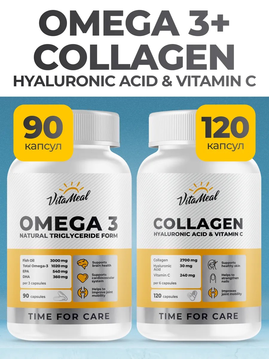 | Комплектация | Омега 3 1000 мг 90 капс банка 1 шт.; Коллаген гиалуроновая кислота+витамин C 120 капсул банка 1 шт.; набор |