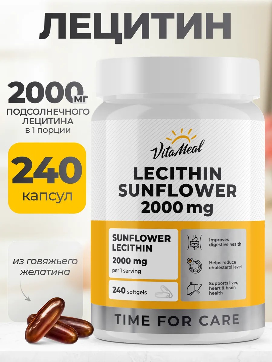 Лецитин от VitaMeal — это источник фосфолипидов из подсолнечного лецитина, в капсулах для приема внутрь.