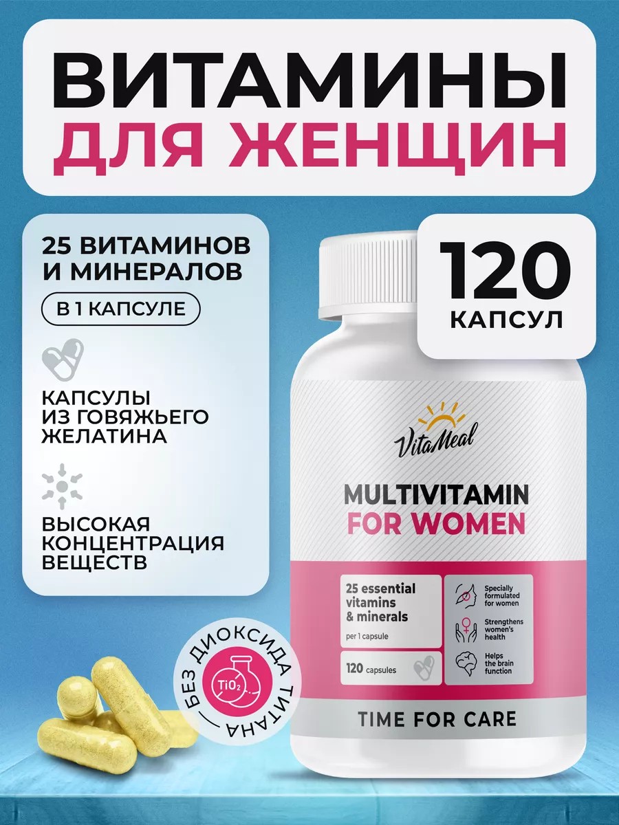 VitaMeal Multivitamin for women — это источник 25 витаминов и минералов, сбалансированных для женского здоровья, в капсулах.