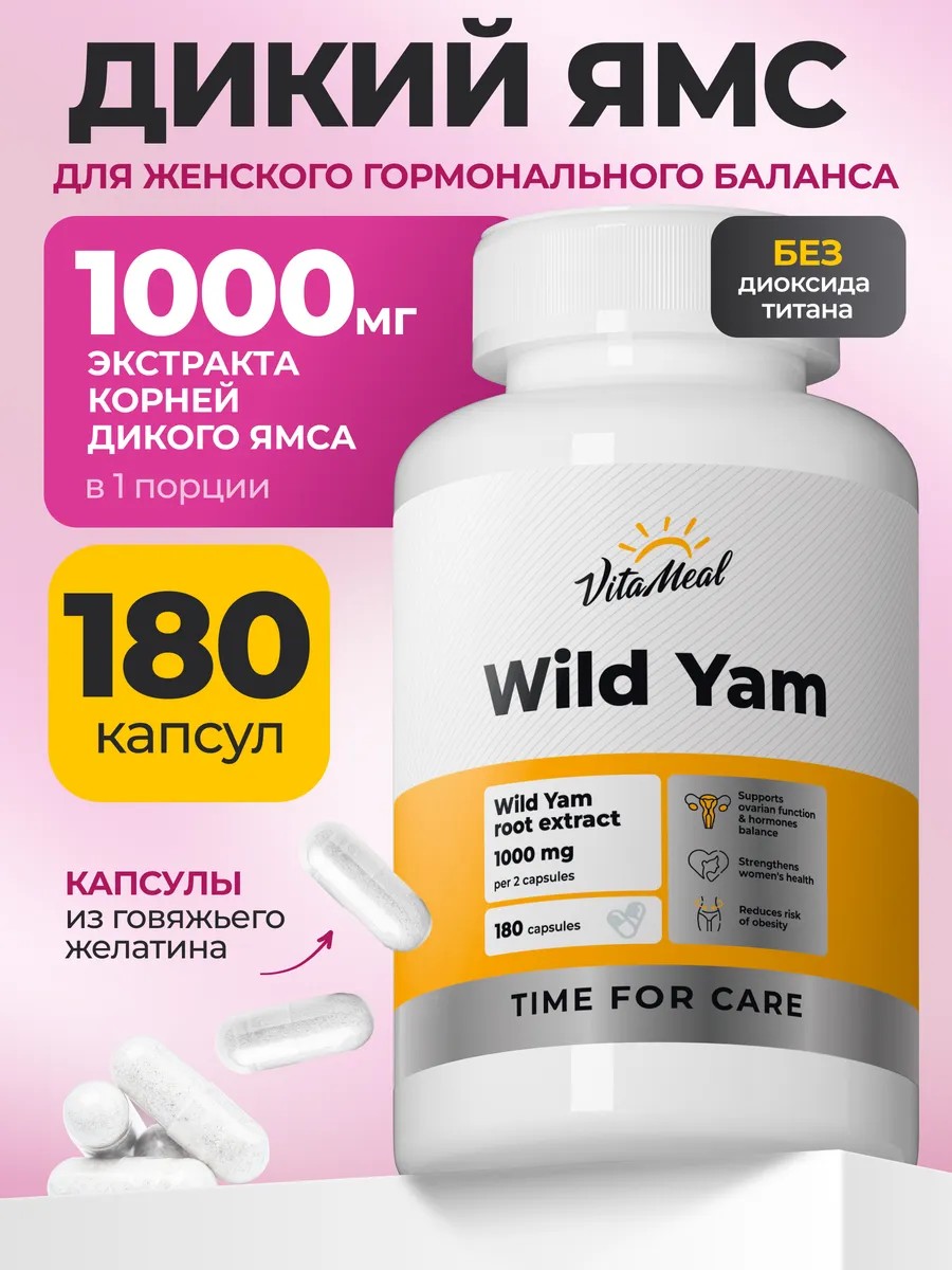 Дикий ямс от VitaMeal — это надежный помощник для женщин, который поддерживает гормональный баланс, снижает симптомы ПМС и менопаузы, укрепляет иммунитет и сосуды. Природная сила дикого ямса и его активных компонентов поможет вам чувствовать себя лучше каждый день!