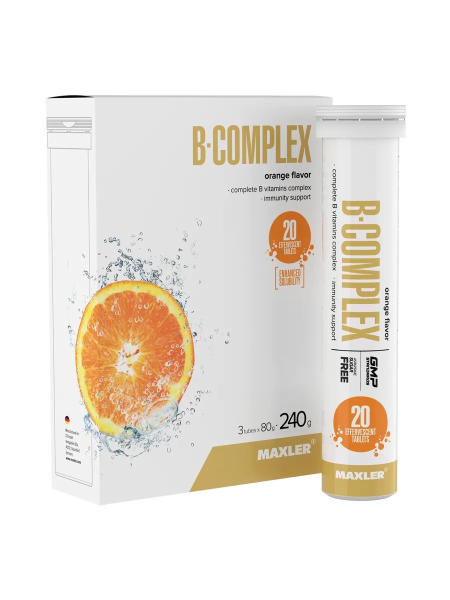| Торговое наименование | Биологически активная добавка к пище МАКСЛЕР «B-Комплекс» вкус: апельсин / MAXLER «B-Complex» Orange flavor, шипучие таблетки по 4,0 г № 20 3 тубы № 20 |