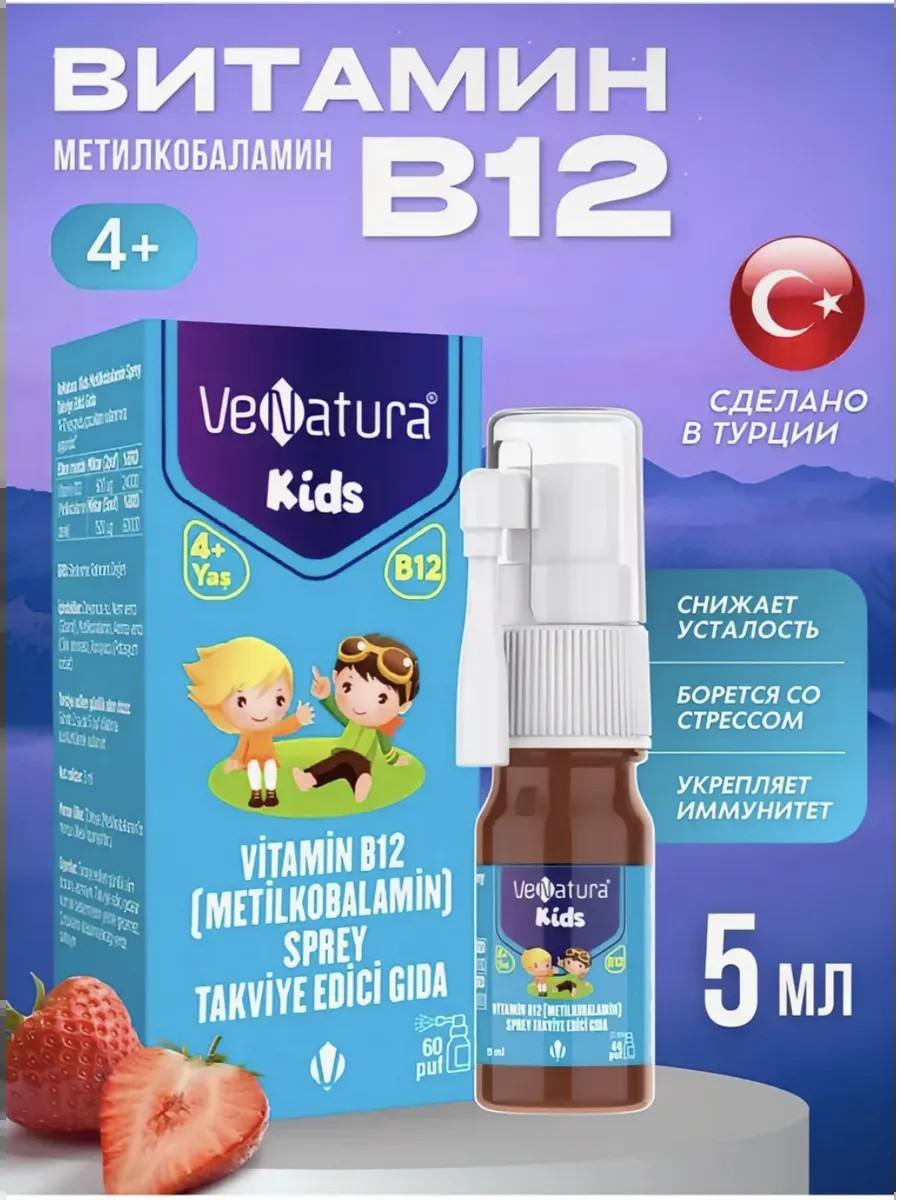 Спрей VeNatura с витамином B12 — это вкусный и удобный способ поддержать здоровье и развитие нервной системы вашего ребенка. Формула, обогащенная рыжим жиром, содержит Омега-3 жирные кислоты DHA и EPA, которые играют важную роль в развитии мозга и зрения. Витамин E и A дополняют действие витамина B12, укрепляя иммунитет и защищая организм от негативного воздействия свободных радикалов. Спрей легко дозировать и принимать, что делает его идеальным выбором для детей, которые не любят глотать таблетки.