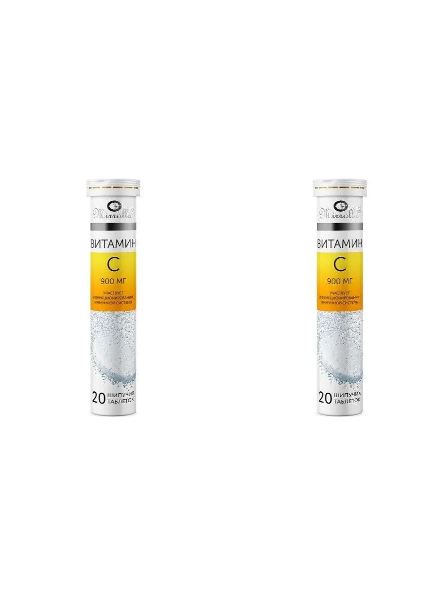 Vitamin C 900 Mirrolla with orange flavor n 20 effervescent tablets. An additional source of vitamin C. As a biologically active food supplement. Vitamin C 900 mg, citric acid (acidity regulator), sodium bicarbonate (acidity regulator), glucose (filler), sodium carbonate (acidity regulator), riboflavin (color), natural flavor, sucralose (sweetener). Biologically active food supplement, an additional source of vitamin C.