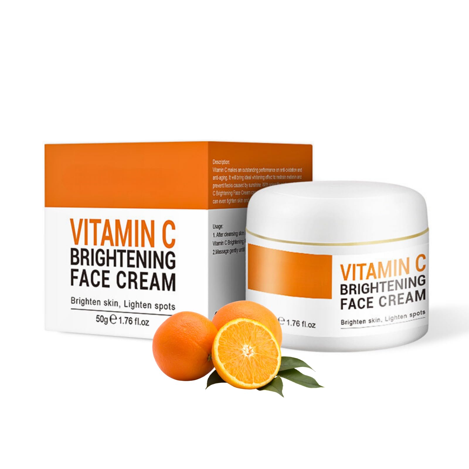 Our Vitamin C face cream is precision-designed to revitalize aging skin,providing the key nutrients needed to restore skin to its beautiful, youthful appearance. If you want to keep moisture, collagen and crucial skin nutrients on your face, far away from skin dry, wrinkled and blemished, You can choose our vitamin c moisturiser with confidence. Vitamin C will provide you with a refreshed, radiant, younger-looking skin. Feature: ✓ Moisturizes and hydrates your skin ✓ Inhibit melanin production, lighten spots, brighten skin tone ✓ Natural antioxidants, reduce fine lines, anti-wrinkle and anti-aging ✓ Evens & brighten skin tone ✓ Fight acne, blemishes and pore blockage ✓ Smooth skin texture ✓ Provide a visible, healthy radiance How to use: 1. Wash your face with lukewarm water and gently dry 2. Gently press the cap to make the cream come out 3. Massage gently until fully absorbed 4. We recommend using it once a day in the morning and evening Main Ingredients: Vitamin C, niacinamide, Cynanchun atratum extract Specification: Product Name: Turmeric Face Cream Net Content: 50g/each Application: Face, Neck Storage Method: In a cool and ventilated place Note: 1. For external use only. 2. Please do a skin test on the wrist and behind the ears before using vitamin c cream. SAFETY WARNING For external use only. Avoid contact with eyes. Keep away from naked flame or direct heat sources.?Natural Botanical Formula?Our turmeric face cream for face has vitamin c, without stimulating ingredients, cruelty-free, vegan.The face moisturizer for nourished skin. Fade the color, making the skin fairer and radiant. ?Non-greasy & Fast-absorbing?Our lightweight, non-greasy vitamin c facial cream can be used day and night, refreshing and non-pore-clogging, the formula absorbs quickly into the skin, leaving it feeling soft and smooth. ?Anti-Wrinkle & Anti-Aging?This anti aging face cream reverses these signs of ageing,fixed wrinkles on the face and improves your complexion.The anti wrinkle cream can reduce fine lines and wrinkles and boost your collagen production,improving firmness,improve the elasticity and tightness of skin, and prevent skin relaxation. ?Moisturizes Skin?Vitamin C face moisturiser increases hydration levels, accelerates cell renewal, restores lost elasticity & ensures long-lasting hydration. This face cream for women deeply hydrates and nourishes the skin, leaving it soft all day long. ?Reduce Facial Blemishes? Our vitamin c face cream is your best choice to remove dark spot corrector.The vitamin c moisturiser for face can eliminate acne marks & suppress acne. And this skin lightening cream can correct skin discoloration, restore skin's age and enjoy a flawless and radiant face.