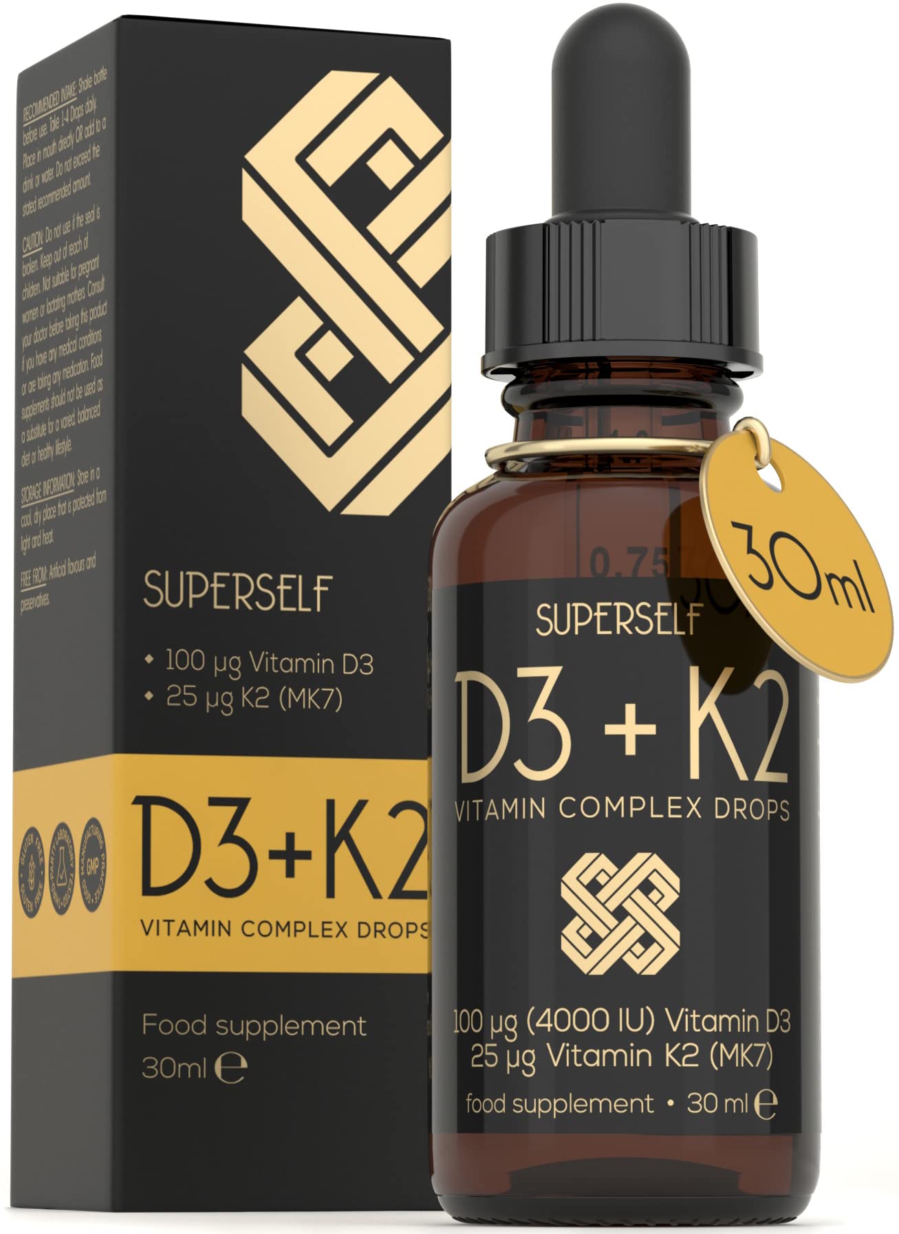 Vitamin D3 and 25mcg of K2 MK-7 for powerful daily support. With around 600 drops per 30ml bottle, you’ll enjoy up to 5 months of consistent use. The clean, vegetarian-friendly formula includes sunflower seed oil, natural orange flavour, and essential vitamins — with no unnecessary additives. EASY TO TAKE DROPS WITH NATURAL ORANGE FLAVOUR - With a light orange flavour and no unpleasant aftertaste, our vitamin D drops are easy to take — even on busy mornings. Simply place under the tongue or add to your favourite drink. Clean, quick, and fuss-free. DAILY SUPPORT FOR BONES, IMMUNITY AND ENERGY - SuperSelf