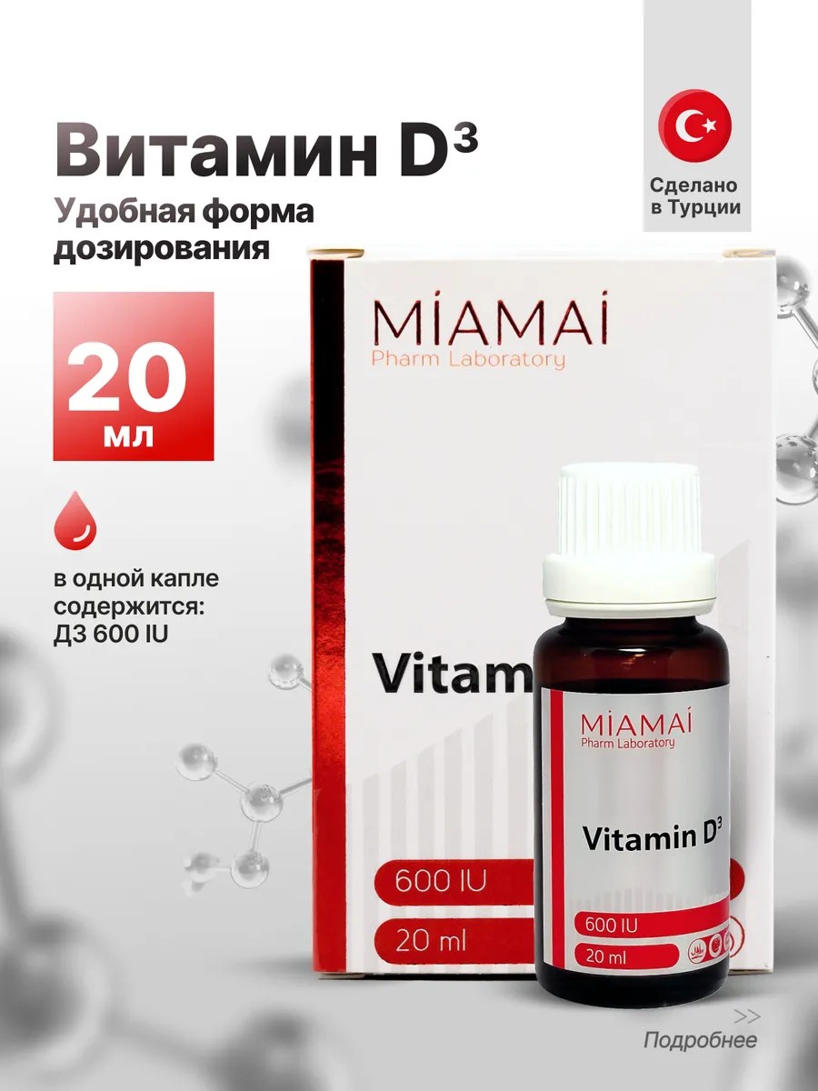 | Полное наименование товара | Miamai Vitamin D3 , Жидкий Витамин Д3 600 IU 20 мл |