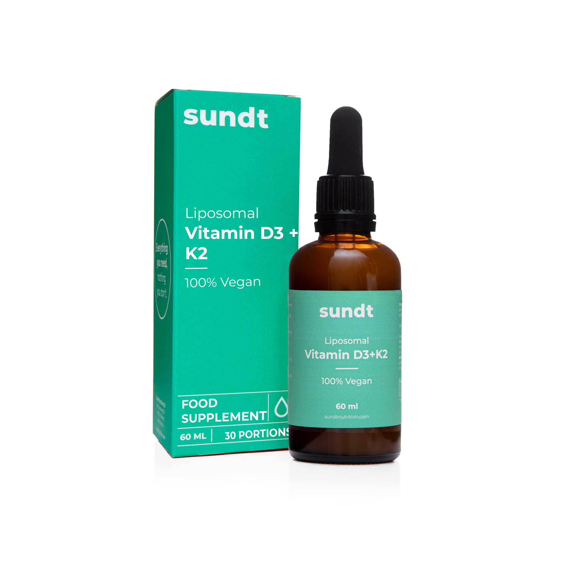 Vitamin D3 K2 Tropfen liposomal | Zucker und Gluten frei | 60 ml Flasche | Vegan | GMO-frei | MADE IN EU | Sundt Supplements