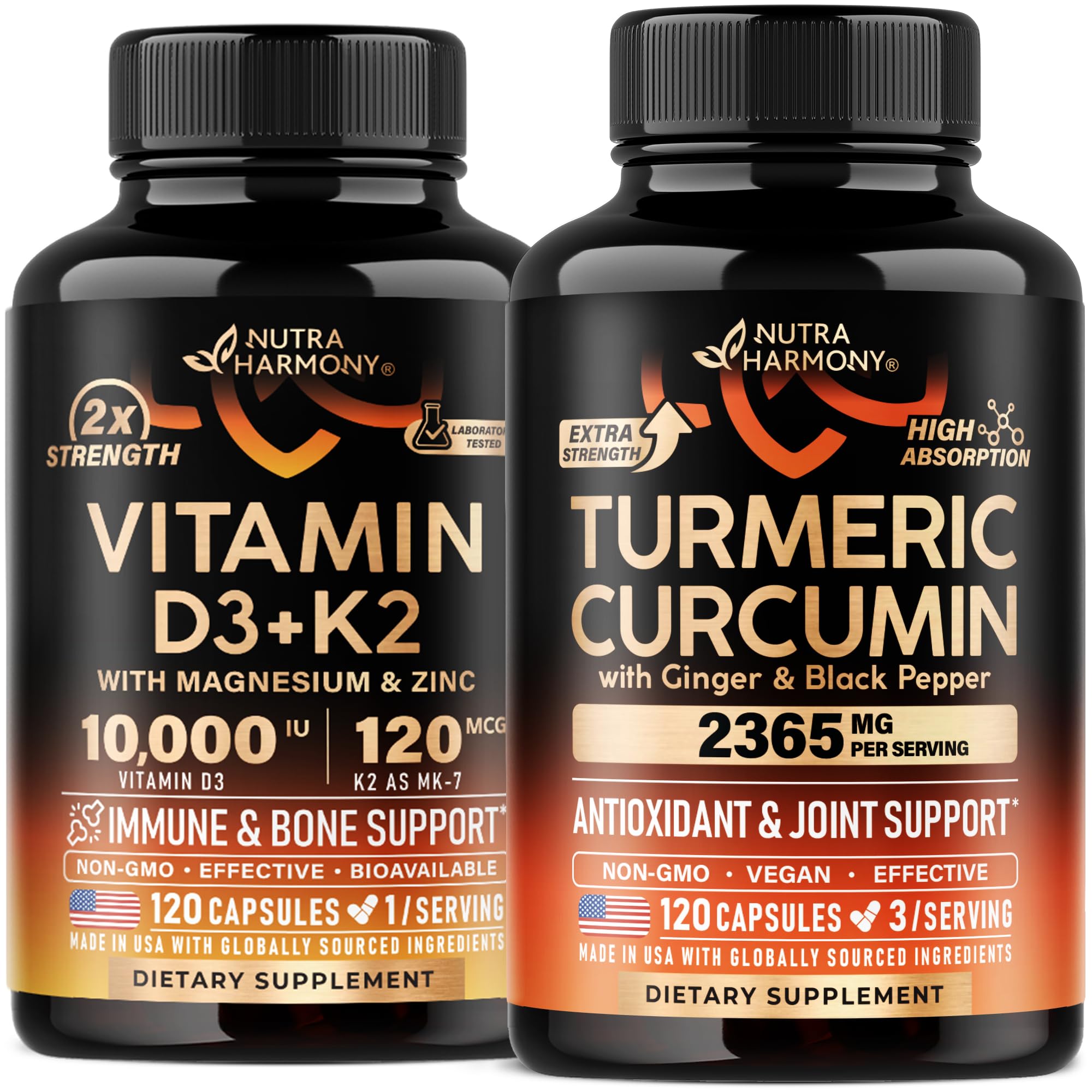 Vitamin D3 K2 Capsules Turmeric Curcumin Capsules by Nutraharmony.
