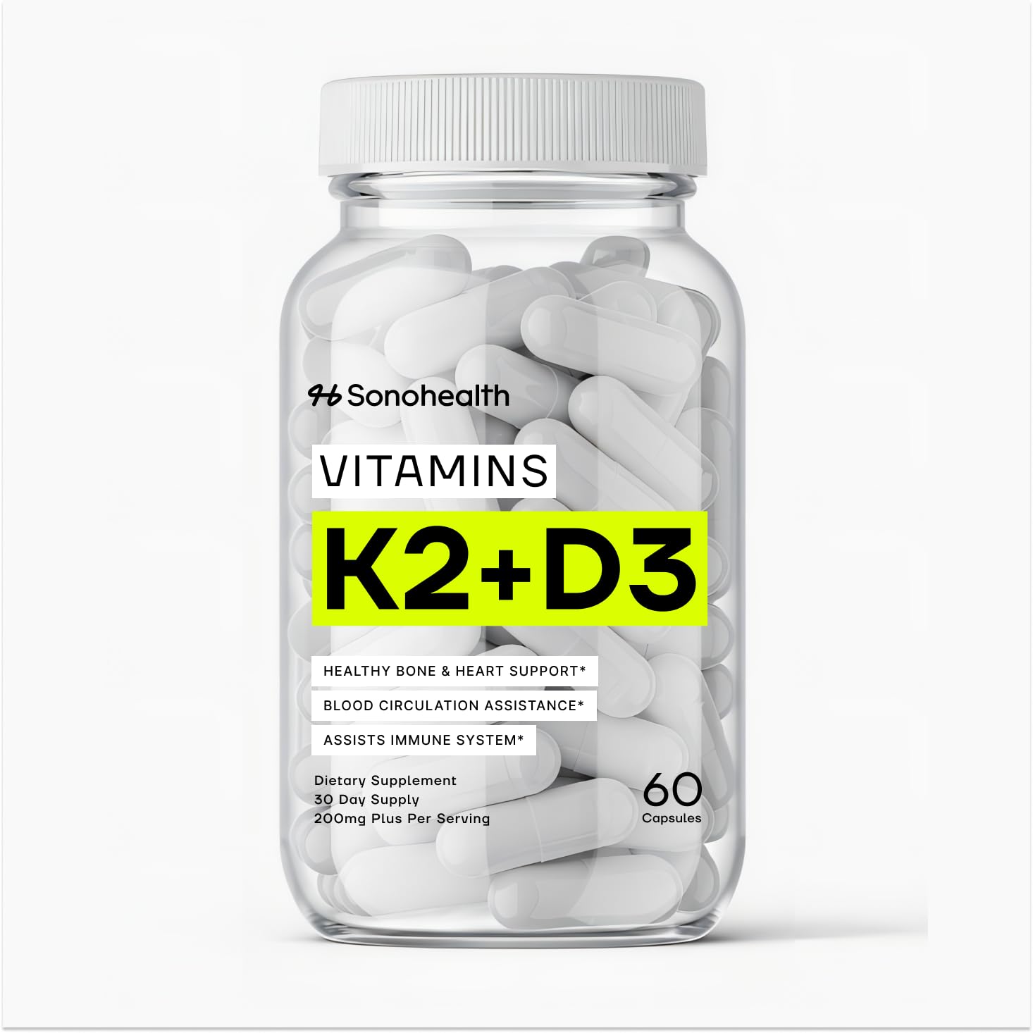 Description: Achieve Optimal Health with Our Vitamin D3 K2 3-in-1 Formula Support your wellness journey with a high-potency combination of Vitamin D3, Vitamin K2 MK-7, and BioPerine. Our premium capsules are designed to help maintain bone strength, promote cardiovascular health, and boost immune function without unnecessary fillers or harmful additives. Why Choose Our Vitamin D3 K2? Highly Absorbable: Powered by BioPerine, our formula enhances the bioavailability of essential nutrients, ensuring your body absorbs more with each serving. Clean Ingredients: Vegan-friendly and made with plant-based sources, our supplement is free from gluten, GMOs, soy, and artificial preservatives. Balanced Nutrient Levels: While Vitamin D3 helps your body absorb calcium, Vitamin K2 directs it to the right places—your bones and teeth—helping to avoid calcium buildup in the arteries. Quality You Can Trust Our Vitamin D3 K2 is manufactured in a GMP-certified facility in the USA, adhering to strict quality and safety standards. Each batch is carefully crafted to meet your wellness needs. Perfect for Every Lifestyle Whether you're looking to strengthen your bones, maintain a healthy heart, or support immune function, our supplement is designed to fit seamlessly into your routine. Lightweight and portable, it's perfect for home or travel. Choose the Smarter Supplement. Choose Wellness.5. Trusted Quality, Made in the USA Manufactured in a GMP-certified facility in the USA, this supplement ensures high quality and safety standards. Non-GMO verified for your peace of mind. 4. Convenient and Easy to Use With a compact 30-day supply (60 capsules), each serving is designed to fit seamlessly into your daily routine. Lightweight bottle for on-the-go wellness. 3. Vegan-Friendly and Clean Label Ingredients Made from plant-based Vitamin D3 sourced from wild-harvested lichen and Vitamin K2 MK-7 derived from fermented chickpeas. Free from GMOs, gluten, soy, dairy, wheat, corn, and artificial preservatives, making it safe for vegans and vegetarians. 2. Enhanced Absorption with BioPerine Includes BioPerine (black pepper extract), scientifically studied to improve nutrient absorption, ensuring you get the maximum benefit from every capsule. 1. High-Potency Vitamin D3 K2 Formula Each capsule delivers 5,000 IU of Vitamin D3 and 100 mcg of Vitamin K2 MK-7, supporting optimal bone strength, cardiovascular health, and overall wellness. Perfect for daily supplementation to help maintain essential nutrient levels.