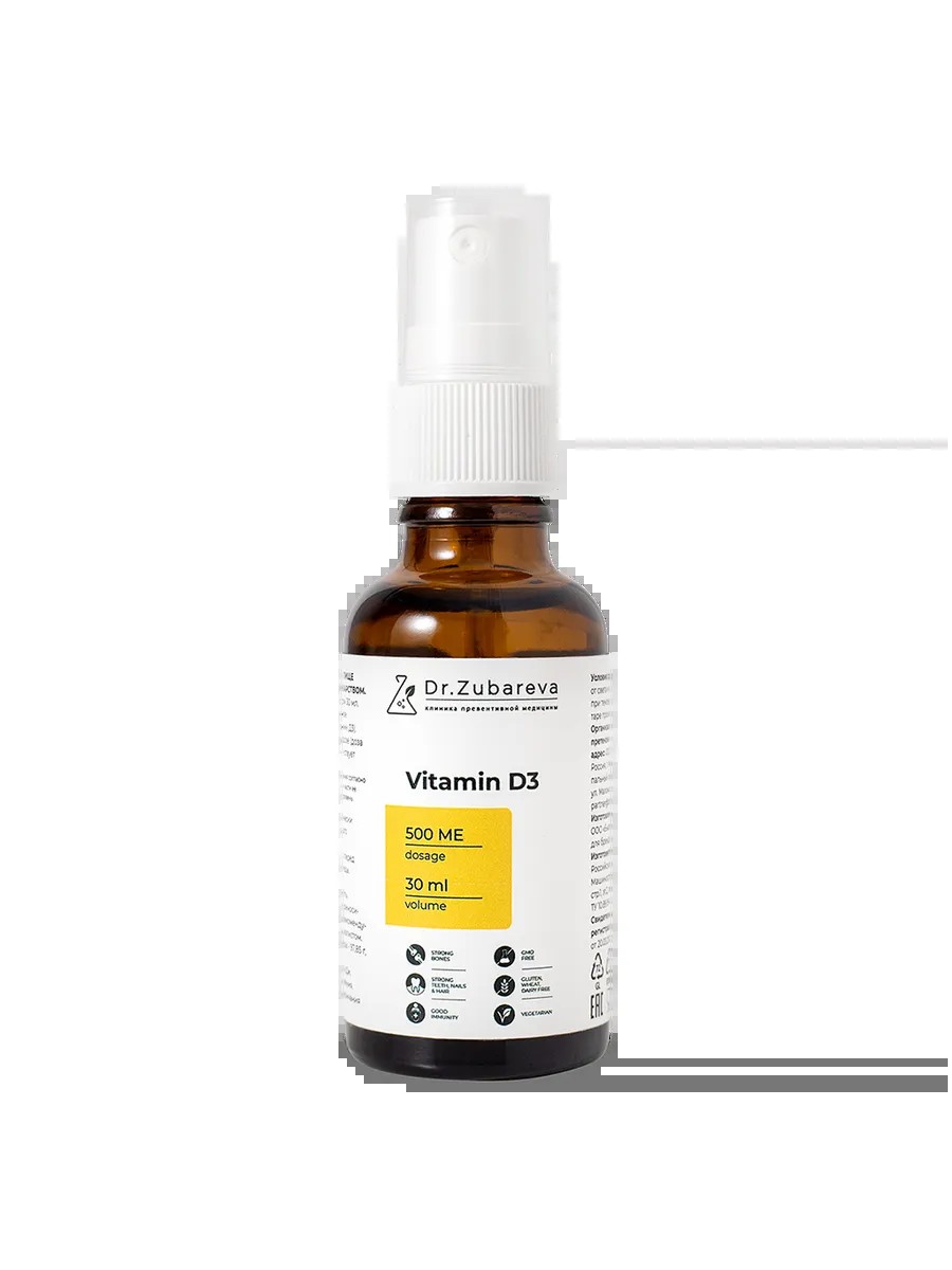 Витамин Д3/Vitamin D3 500 МЕ Dr.Zubareva 140 доз фл с дозатором 30 мл 1 шт