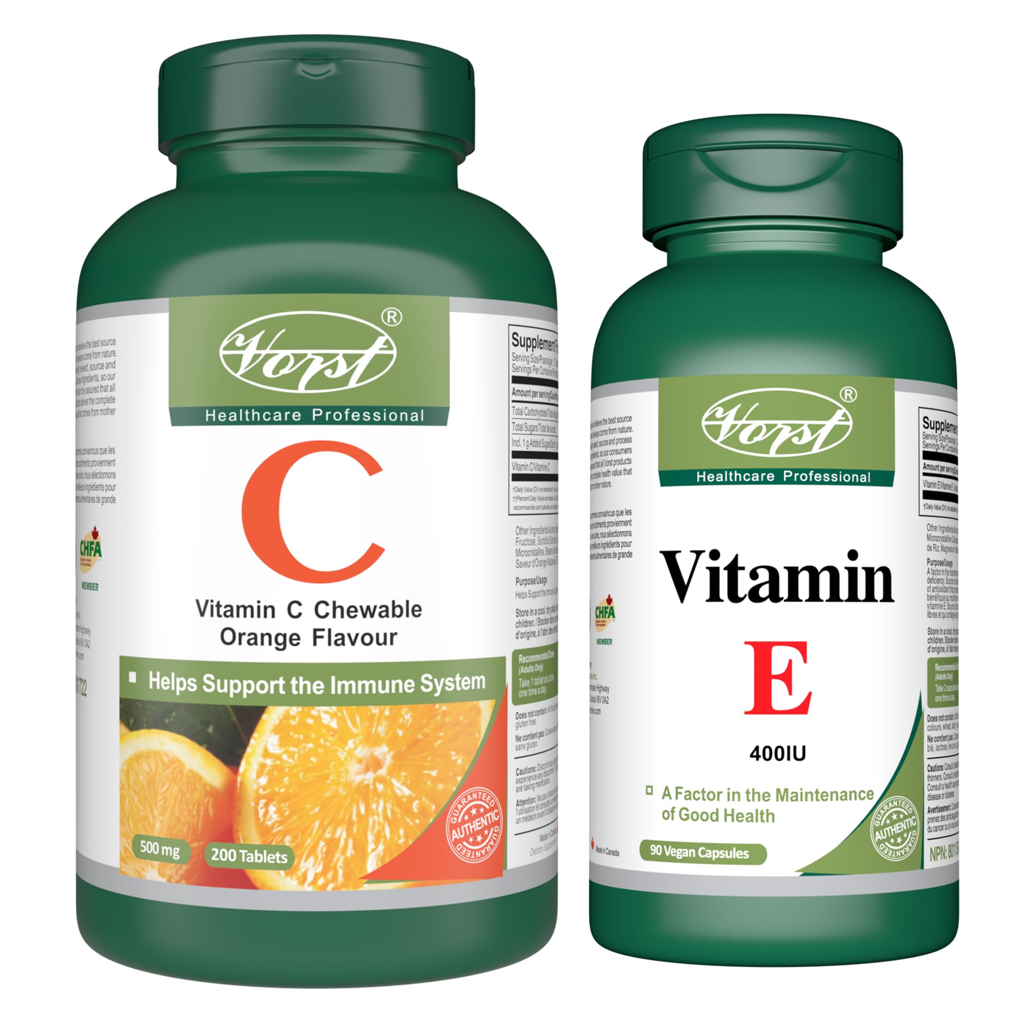 ✓PURCHASE ASSORTED COMBOS and enjoy a variety selection of VORST natural health supplements. ✓MADE IN CANADA in our GMP Government licensed facility. 30 years of quality. ✓VITAMIN C helps to boost the immune system and support overall health. ✓VITAMIN E helps maintain good health by assisting the body fight and potentially delay signs of poor health or general complications caused by oxidative stress.