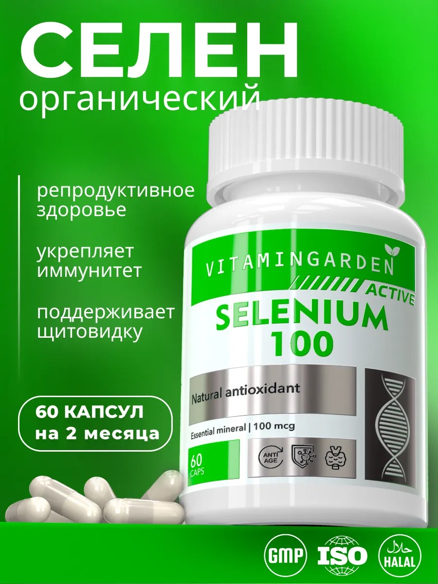 SELENIUM 100 — источник органического селена в хелатной форме селенметионина, которая отлично усваивается организмом. Селен — один из самых мощных антиоксидантов: он защищает клетки от повреждения свободными радикалами и раннего старения, поддерживает работу органов. В каждой капсуле БАД 100 мкг натурального селена — высокая дозировка, разрешенная в России для ежедневного приема.