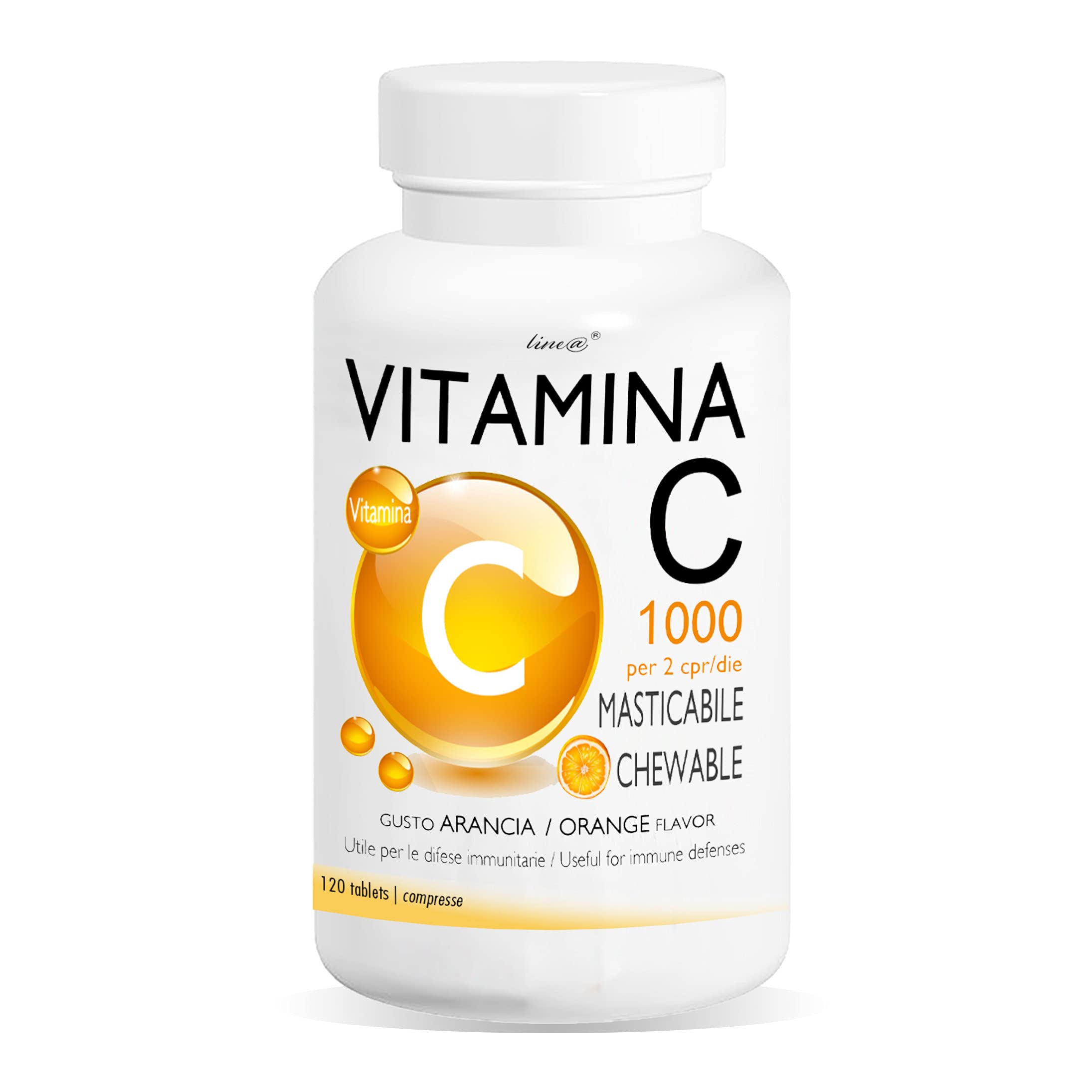 Available in two pack sizes: 60 or 120 chewable tablets. It helps fight oxidative stress, improves the health of skin, bones, nails, and hair, combats free radicals, wrinkles, and signs of aging, and reduces fatigue. Ascorbic acid is a natural organic compound with antioxidant properties. The human body cannot produce vitamin C on its own, so it is very important to get the right amount through a proper diet. Maximum convenience thanks to the chewable tablets! You can take them without water, like candy, thanks to their great taste, wherever you are! Orange-flavored chewable vitamin C tablets, high dose, with 1000 mg per 2 tablets!Disponible en 2 formats de 60 ou 120 comprimés à croquer. Il aide à lutter contre le stress oxydatif, améliore la santé de la peau, des os, des ongles et des cheveux, combat les radicaux libres, les rides et les signes du vieillissement et réduit la fatigue. L'acide ascorbique est un composé organique naturel aux propriétés antioxydantes. Le corps humain n'est pas capable de produire de la vitamine C par lui-même, il est donc très important de prendre les bonnes doses en suivant un régime alimentaire approprié. Un maximum de commodité grâce aux comprimés à croquer ! Vous pouvez les prendre sans eau comme des bonbons grâce à leur bon goût, où que vous soyez !. Comprimés de vitamine C à croquer goût orange, à forte dose, avec 1000 mg par 2 comprimés !.Vitamine C Line diet 120 comprimés à croquer goût orange haut dosage antioxydant