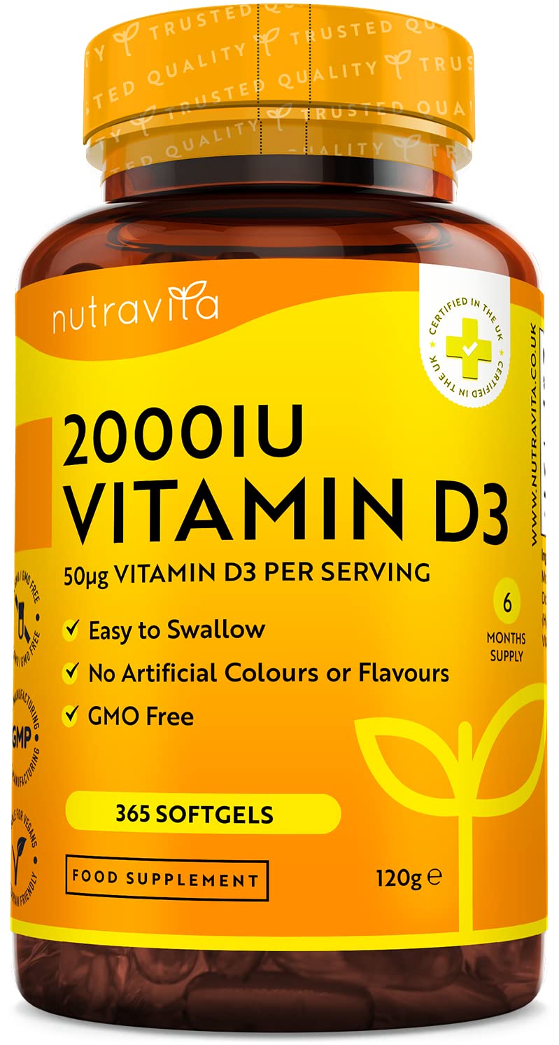 ? WHAT IS THE NUTRAVITA STORY? - Nutravita is a well-known and trusted vitamin and supplement brand that has been supplying thousands of customers worldwide since 2014. Our high-quality products are manufactured, batch-tested, and certified in the UK, and protected by the highest manufacturing standards in the world (GMP, BRC). We have a dedicated team of chemists and researchers working to find the most beneficial ingredients. ? CUSTOMER PEACE OF MIND - We have done our best to provide as much information as possible, but if you have any questions, please contact our Customer Care team. They will be happy to provide you with personalized assistance to help this supplement fit your lifestyle. We always hope our customers are 100 satisfied with the product they receive, so if you are not happy, please do not hesitate to contact us. ? WHY DO WE NEED TO TAKE VITAMIN D SUPPLEMENTS? - Vitamin D is naturally produced by the body in response to sunlight and is found in certain food sources such as oily fish, mushrooms, and eggs. Taking supplements can help maintain adequate vitamin D levels throughout the year. ? HOW IMPORTANT IS VITAMIN D? - Getting enough vitamin D is essential for our health as it contributes to the normal function of the immune system. Scientific studies also indicate that it plays a vital role in the process of cell division and in the normal absorption of calcium and phosphorus, which are needed to maintain healthy bones, teeth, and muscles. Claims supported by the EFSA. ? WHY NUTRAVITA VITAMIN D3 2000 IU? - Our high-quality, non-GMO vitamin D supplement is specially formulated for easy absorption by the body. It is offered in small, easy-to-swallow capsules, not tablets, and contains no artificial colors or flavors.? QUELLE EST L'HISTOIRE DE NUTRAVITA ? - Nutravita est une marque de vitamines et de suppléments reconnue et de confiance qui fournit des milliers de clients à travers le monde depuis 2014. Nos produits de haute qualité sont fabriqués, testés par lots et certifiés au Royaume-Uni, et protégés par les normes de fabrication les plus élevées au monde (GMP, BRC). Nous avons une équipe dédiée de chimistes et de chercheurs qui travaillent pour trouver les ingrédients les plus bénéfiques. ? TRANQUILLITÉ D'ESPRIT DU CLIENT - Nous avons fait de notre mieux pour fournir autant d'informations que possible, mais si vous avez des questions, veuillez contacter notre équipe de Service Client. Ils se feront un plaisir de vous fournir une assistance personnalisée pour aider ce supplément à s'adapter à votre style de vie. Nous espérons toujours que nos clients soient 100 satisfaits du produit qu'ils reçoivent, et donc si vous n'êtes pas satisfait, n'hésitez pas à nous contacter. ? POURQUOI AVONS-NOUS BESOIN DE PRENDRE DES SUPPLÉMENTS EN VITAMINE D? - La vitamine D est produite naturellement par l'organisme en réponse à la lumière du soleil et se trouve dans certaines sources alimentaires telles que les poissons gras, les champignons et les œufs. La prise de suppléments peut aider à maintenir des niveaux satisfaisants de vitamine D tout au long de l'année. ? QUELLE EST L'IMPORTANCE DE LA VITAMINE D? - Obtenir suffisamment de vitamine D est essentiel pour notre santé car elle contribue au fonctionnement normal du système immunitaire. Des études scientifiques indiquent également qu'il joue un rôle vital dans le processus de division cellulaire et dans l'absorption normale du calcium et du phosphore, qui sont nécessaires au maintien de la santé des os, des dents et des muscles. Allégations étayées par l'EFSA. ? POURQUOI NUTRAVITA VITAMINE D3 2000 UI? - Notre supplément de vitamine D de haute qualité sans OGM est spécialement formulé pour être facilement absorbé par le corps. Il est offert en petites gélules faciles à avaler, et non en comprimés et ne contient pas de colorants ni d'arômes artificiels.Vitamine D 2000 UI (50µg) - 365 VIT D Softgel Capsules - pour le maintien d'un système immunitaire, de muscles, d'os et de dents sains - Vitamine D3 cholécalciférol - Nutravita