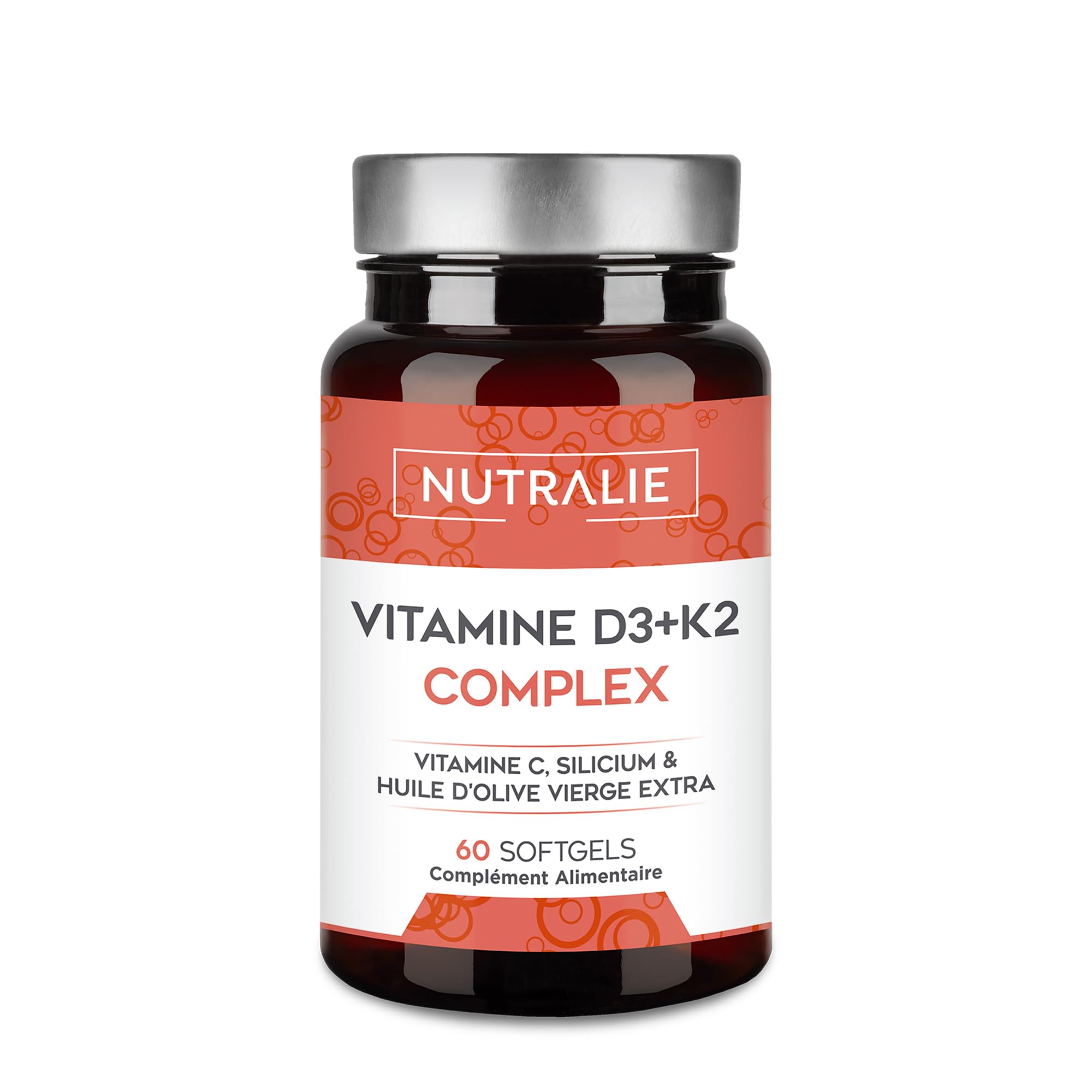 NUTRALIE FOR YOUR DAILY NEEDS. Discover all Nutralie products we have over 40 items to support you every day. FOR 20 MONTHS: Take 1 capsule every 10 days. The bottle contains 60 capsules, a 20-month supply. ? 5 ACTIVE INGREDIENTS: Nutralie's Vitamin D3K2 complex contains 250µg of Vitamin D, 100µg of Vitamin K, 15mg of Vitamin C, 25mg of Silica, and 29.41mg of Bamboo Extract per capsule. VITAMIN D 10,000 IU: The Vitamin D in Nutralie's Vitamin D3K2 complex provides 10,000 IU per capsule. VITAMIN D3K2 COMPLEX: Each capsule contains Vitamin D, Vitamin K, Vitamin C, Silica, and Bamboo Extract. Vitamin D contributes to the maintenance of normal muscle function, Vitamin K contributes to the maintenance of normal bones, and Vitamin C contributes to the normal function of the immune system. Statements supported by the EFSA (European Food Safety Authority).NUTRALIE POUR VOTRE QUOTIDIEN. Découvrez tous les produits Nutralie, nous avons plus de 40 références pour vous accompagner au quotidien. POUR 20 MOIS: Consommer 1 gélule tous les 10 jours. Le flacon contient 60 gélules, soit une durée de 20 mois. ? 5 ACTIFS: Le complexe Vitamine D3K2 de Nutralie contient par gélule 250µg de Vitamine D, 100µg de Vitamine K, 15mg de Vitamine C, 25mg de Silice et 29,41mg d'Extrait de Bambou. VITAMINE D 10000 UI: La Vitamine D contenue dans le complexe Vitamine D3K2 de Nutralie est de 10000 UI par dose d'une gélule. COMPLEXE VITAMINE D3K2: Chaque gélule contient de la Vitamine D, de la Vitamine K, de la Vitamine C, de la Silice et de l'Extrait de Bambou. La vitamine D contribue au maintien d'une fonction musculaire normale, la vitamine K contribue au maintien d'une ossature normale et la vitamine C contribue au fonctionnement normal du système immunitaire. Déclarations étayées par l'EFSA (Autorité européenne de sécurité des aliments).Vitamine D3 et K2 10000 UI - Immunité Os Muscles - Vitamine D3 K2 MK7 avec Vitamine C et Huile d'Olive Extra Vierge - 60 gélules Vitamine D Complex Nutralie