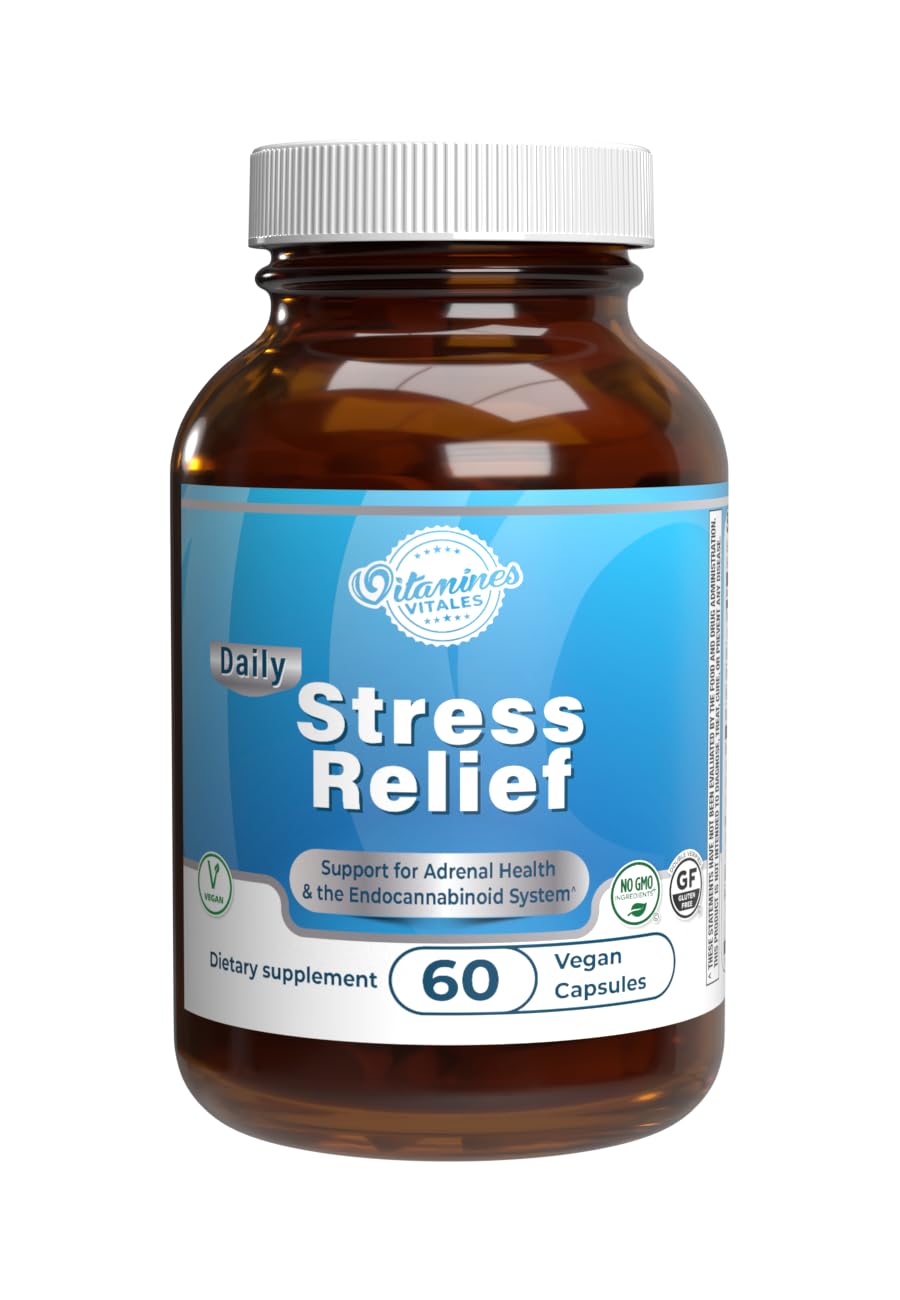 Vitamines Vitales Stress Relief offers a natural way to restore balance, calm, and mental clarity in your daily life. Formulated with key nutrients like Ashwagandha, B Vitamins, and Magnesium, it helps your body manage everyday stress while supporting a stable mood and emotional well-being. Designed for those with busy routines or high-pressure days, this gentle blend encourages relaxation without drowsiness, helping you feel centered and in control. With clean, plant-based ingredients, these vegan capsules are free from GMOs, gluten, dairy, and artificial additives — making them suitable for a wide range of lifestyles. Take two capsules daily with water or a meal to make calmness a consistent part of your wellness routine. • Promotes calm and stress balance • Supports restful sleep and focus • 100 vegan and non-GMO • Easy daily use, no artificial additives Choose Vitamines Vitales for reliable, everyday support toward a calmer, clearer, and more balanced you.? Trusted Quality by Vitamines Vitales: Each capsule is created with care and backed by the Vitamines Vitales commitment to quality, transparency, and your overall well-being — stress support you can rely on. 100 Vegan Clean Ingredients: Made with plant-based capsules and free from GMOs, gluten, dairy, and artificial additives — a clean, cruelty-free formula suitable for all lifestyles. ? Easy Daily Use for Lasting Balance: Take two vegan capsules daily with water or a meal to make stress relief part of your simple, consistent wellness routine — no complicated steps required. Improves Sleep Quality Relaxation: Supports calmness and relaxation, helping you unwind after a busy day and enjoy more restful, refreshing sleep — ideal for restoring daily balance. Natural Stress Relief Mood Support: Formulated with Ashwagandha, B Vitamins, and Magnesium to help your body manage everyday stress and support a balanced, positive mood naturally.
