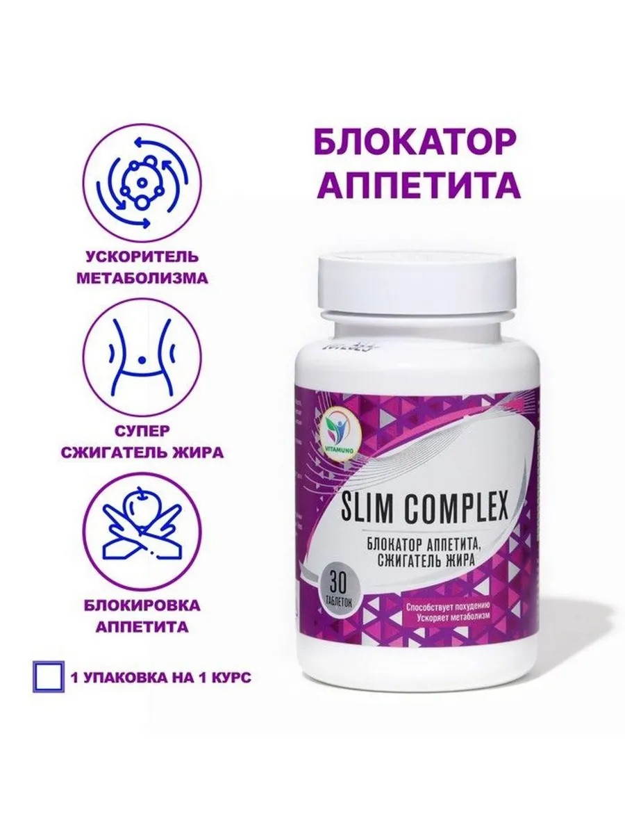 «Блокатор аппетита» от Vitamuno включает витамины В1, В2, В5, В6, альфа-липоевую кислоту и синефрин.Базовый индекс метаболизма помогает определить необходимое количество калорий для поддержания жизни. Благодаря синефрину, метаболизм ускоряется, что способствует контролю массы тела. Альфа-липоевая кислота активирует обмен веществ и способствует естественному сжиганию жиров. После похудения ваша кожа останется гладкой и молодой.Показания к применению:Рекомендуется как дополнительный источник витаминов для контроля массы тела.Противопоказания:Индивидуальная непереносимость, беременность, кормление грудью, повышенная нервная возбудимость, бессонница, высокое артериальное давление, тяжёлые заболевания печени и почек. Перед применением обязательно проконсультируйтесь с врачом.Способ применения:Взрослым по 1 таблетке в день, не менее месяца. При необходимости курс можно повторить.
