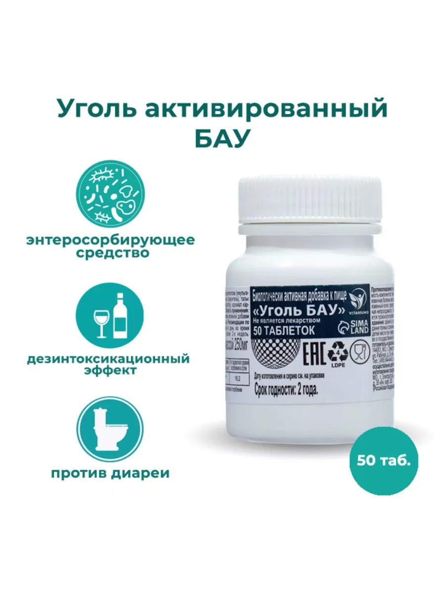 | Комплектация | Уголь активированный БАУ Экотекс 50 таблеток по 0,25 г |