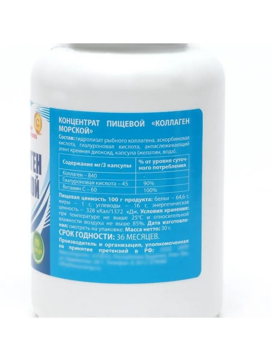 Откройте для себя натуральный комплекс ухода за здоровьем и красотой с нашим морским коллагеном, обогащенным витамином С и гиалуроновой кислотой. Этот продукт создан для тех, кто стремится сохранить молодость, укрепить кожу, волосы и ногти, а также поддержать здоровье суставов и костей. Каждая капсула содержит гидролизат рыбного коллагена, который способствует повышению эластичности и упругости кожи, уменьшению морщин и восстановлению структуры волос и ногтей. Витамин С улучшает усвоение коллагена, усиливая его эффективность и стимулируя синтез собственного коллагена в организме. Гиалуроновая кислота ускоряет процессы регенерации тканей, увлажняет кожу и способствует ее гладкости. Комплекс помогает замедлить признаки старения, укрепить связки и суставы, а также поддержать здоровье костей. Рекомендуемый курс приема — по 3 капсулы в день, предпочтительно во время еды. Подарите своему организму заботу и молодость с нашим натуральным комплексом для красоты и здоровья.