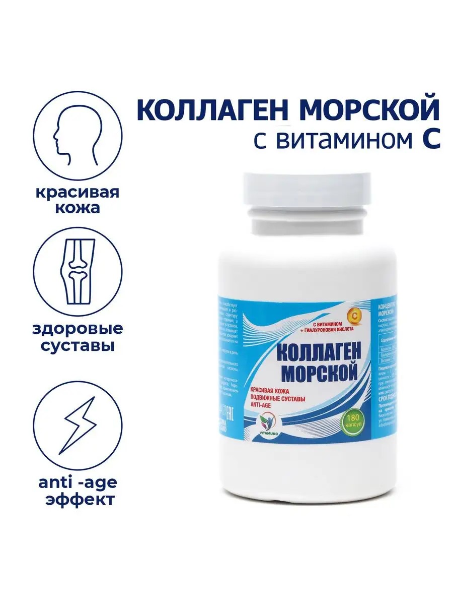 | Комплектация | Коллаген морской с витамином С Vitamuno 180 капсул |