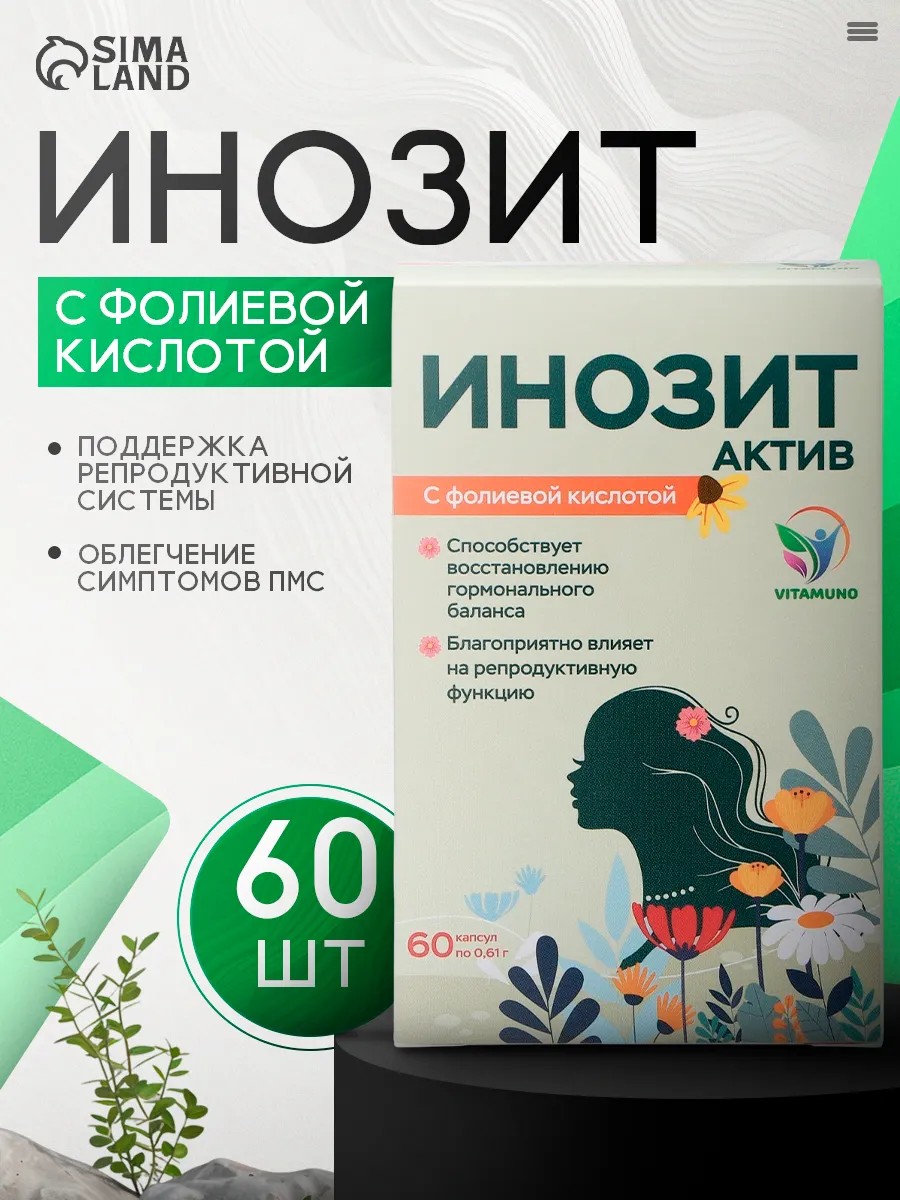 Инозит 1000 мг + фолиевая кислота 600 мкг 60 капсул