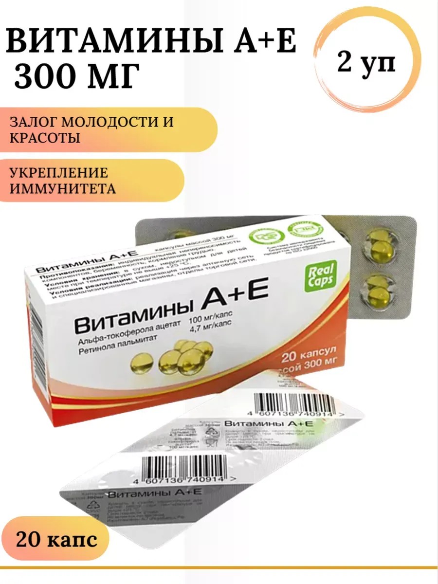 РеалКапс Витамины А + Е № 20 капс. 300 мг. RealCaps / 2 уп