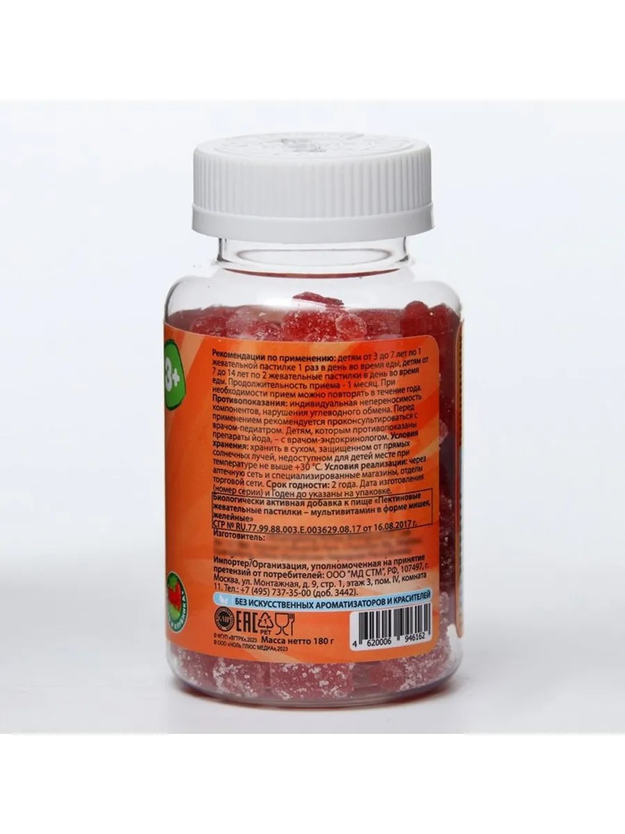 Пектиновые жевательные пастилки не содержат искусственных красителей и ароматизаторов, что делает их безопасными и полезными для здоровья. Рекомендуемый режим приема зависит от возраста ребенка: детям 3-7 лет — по одной пастилке в день, детям 7-14 лет — по две пастилки дважды в день во время еды. Курс приема составляет один месяц, при необходимости его можно повторять в течение года.