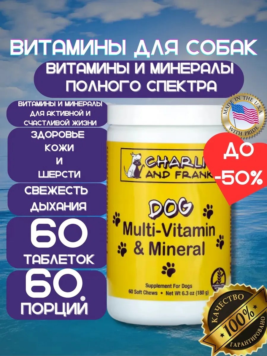 – Мультивитамины для собак – для комплексной поддержки организма (Charlie & Frank Dog Multi).