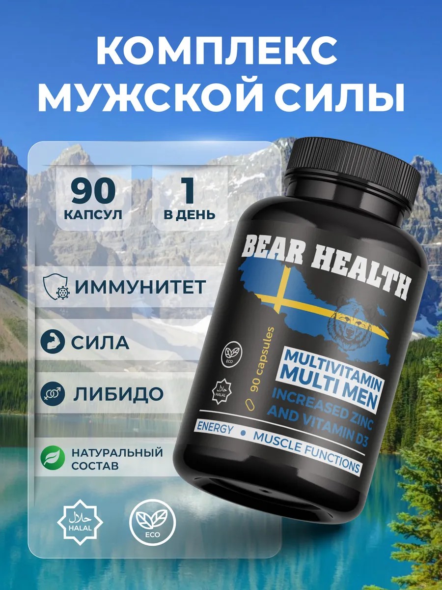 Уникальный состав мультивитаминов для мужчин Bear Health "Мужская сила" специально разработан для мужчин, чтобы помочь им поддерживать оптимальное здоровье.
