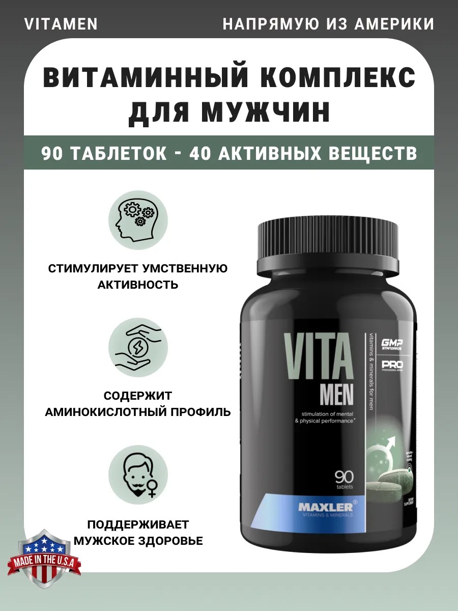 Созданный специально для мужчин, комплекс ключевых минералов и экзотических фито-добавок VitaMen способствует улучшению умственной и физической активности, здоровью простаты, снижает негативные последствия стресса и нормализует функцию пищеварительной системы. Данный продукт снабжает ваш организм важными и быстро усваиваемыми аминокислотами, которые способствуют росту мышц. VitaMen содержит все, что вам необходимо для достижения максимальных результатов!