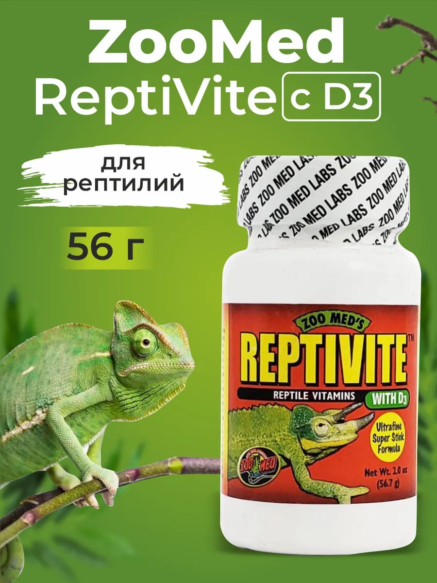 Витаминный комплекс для рептилий от Zoo Med. Добавка содержит полный комплекс витаминов, минералов и аминокислот, подобранных специально для рептилий. ReptiVite на основе кальция обеспечивает здоровый рост костей с правильным соотношением кальция и фосфора 2: 1.