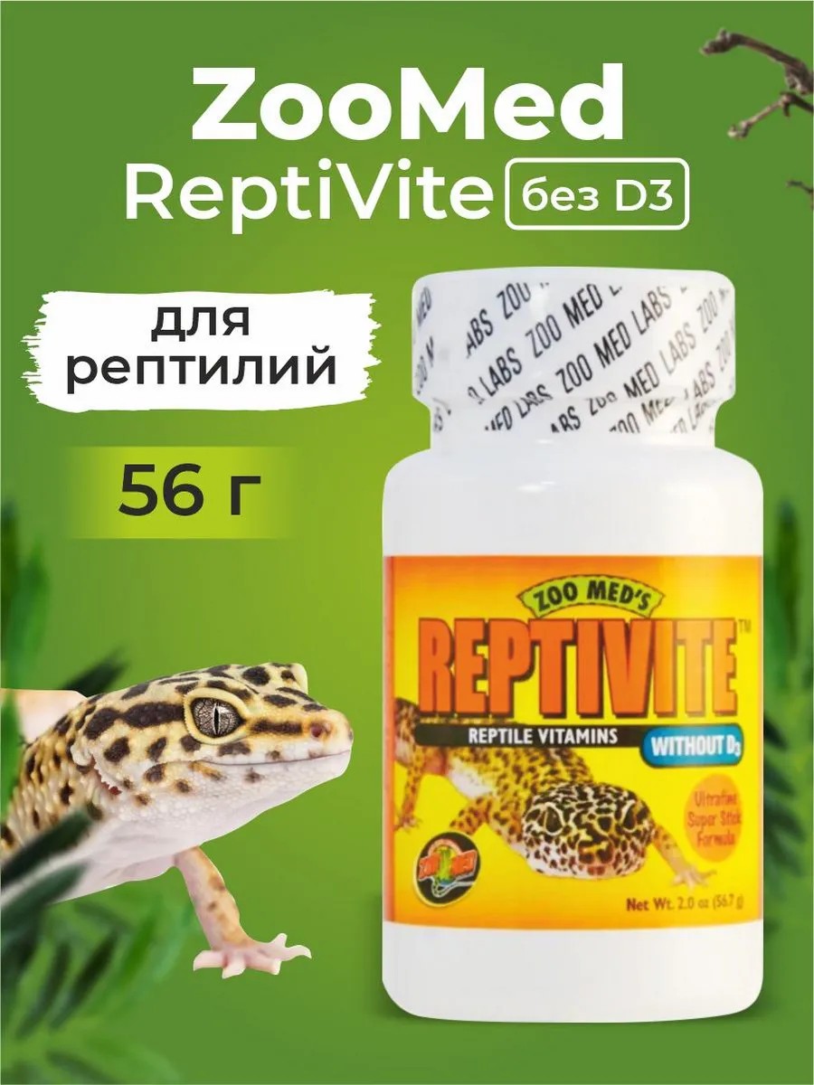 Витаминный комплекс для рептилий от Zoo Med. Добавка содержит полный комплекс витаминов, минералов и аминокислот, подобранных специально для рептилий. ReptiVite на основе кальция обеспечивает здоровый рост костей с правильным соотношением кальция и фосфора 2: 1.