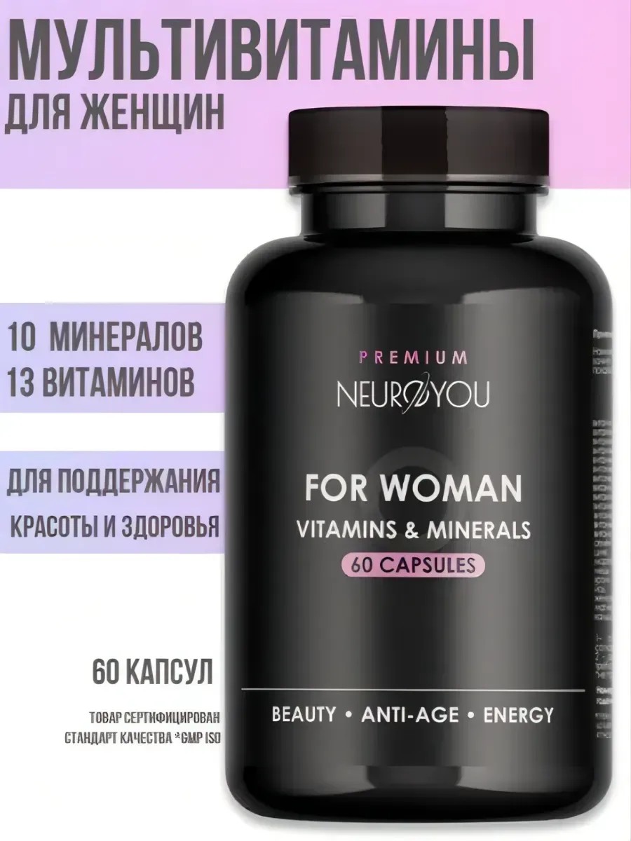 Витаминно-минеральный комплекс NEUROYOU — 13 витаминов + 10 минералов для здоровья и красоты женщины - Идеальный баланс для сияющей кожи, крепких волос, энергии и иммунитета!