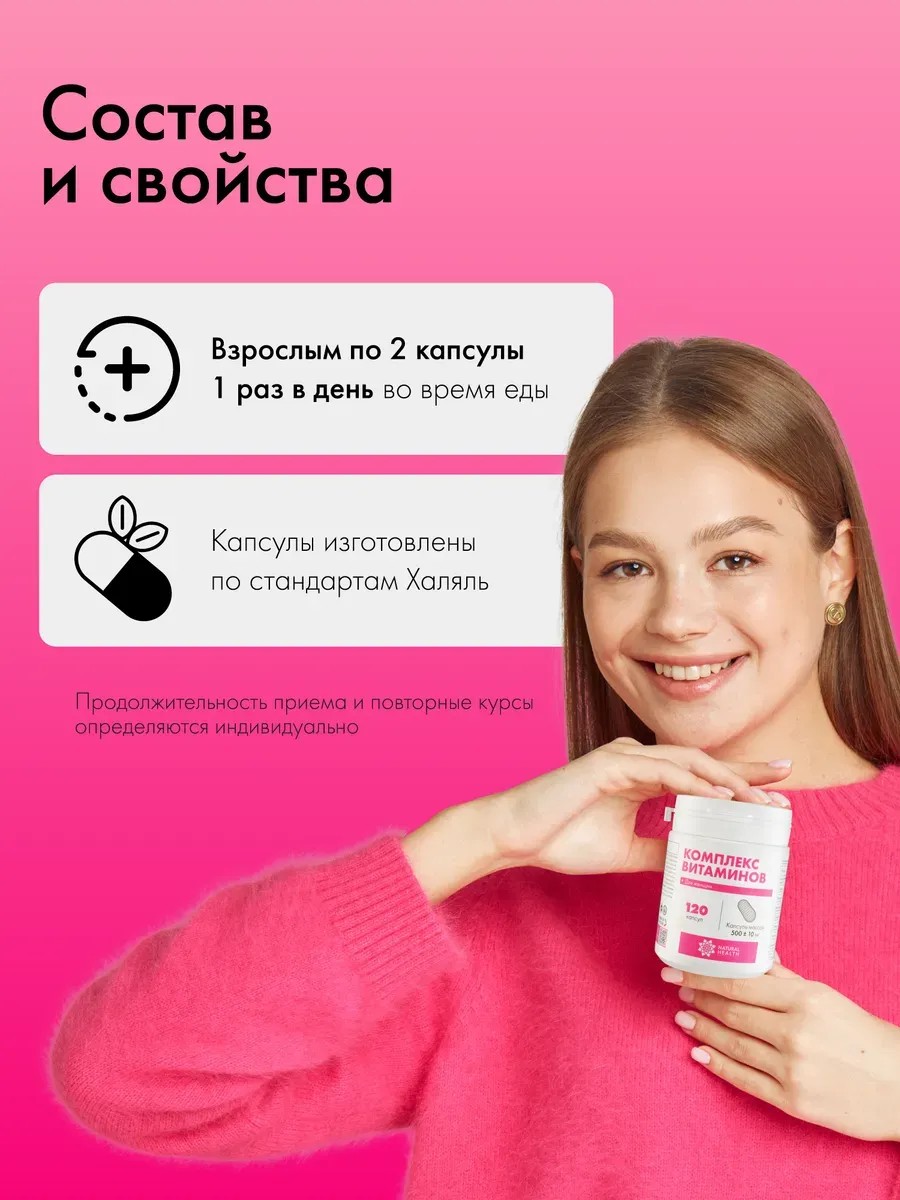 Комплекс витаминов для женщин «Vitamin complex for women» от Natural Health – это биологически активная добавка, разработанная специально для поддержания женского здоровья и красоты в любом возрасте. В состав комплекса входят гидролизованный рыбный коллаген, аскорбиновая кислота, витамины группы B, D-биотин, железо и инозитол. Данный комплекс помогает укрепить волосы, кожу и ногти, а также поддерживает иммунитет. Коллаген способствует укреплению связок и суставов, улучшая подвижность в позвоночнике и суставах. Витамины группы B и D-биотин положительно влияют на умственную активность, помогают бороться со стрессом и тревожностью. Комплекс витаминов для женщин Natural Health – это надежный помощник для поддержания здоровья и красоты, а также для улучшения общего самочувствия.