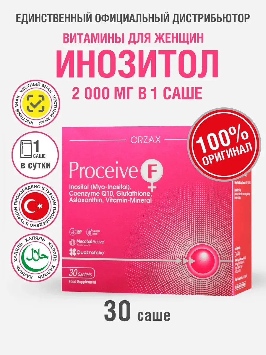 Proceive F from Orzax is a complex of vitamins with inositol to strengthen the immune system and improve reproductive function.