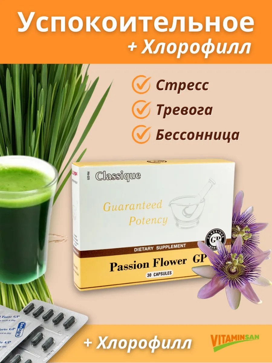 | Комплектация | Пассифлора 1 упаковка; хлорофилл 15 капсул; инструкция 1шт |