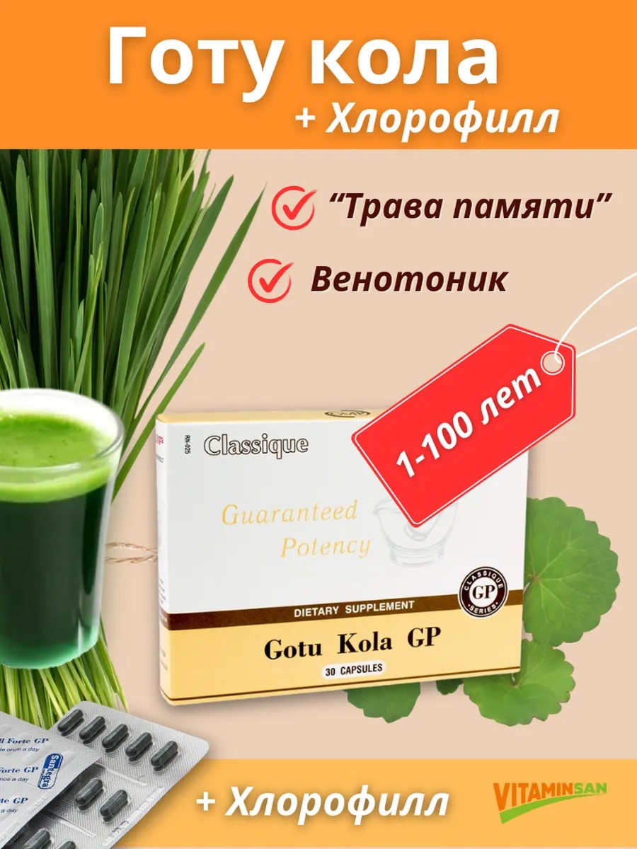 | Комплектация | Gotu Kola GP -30 капсул; хлорофилл- 1 блистер; Инструкция-1шт |