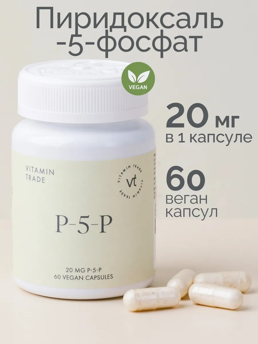 P-5-P пиридоксаль 5-фосфат от VITAMIN TRADE это бад витамин б6 (пиридоксин) в биоактивной форме в растительных капсулах, без фармацевтических добавок, консервантов и Е.