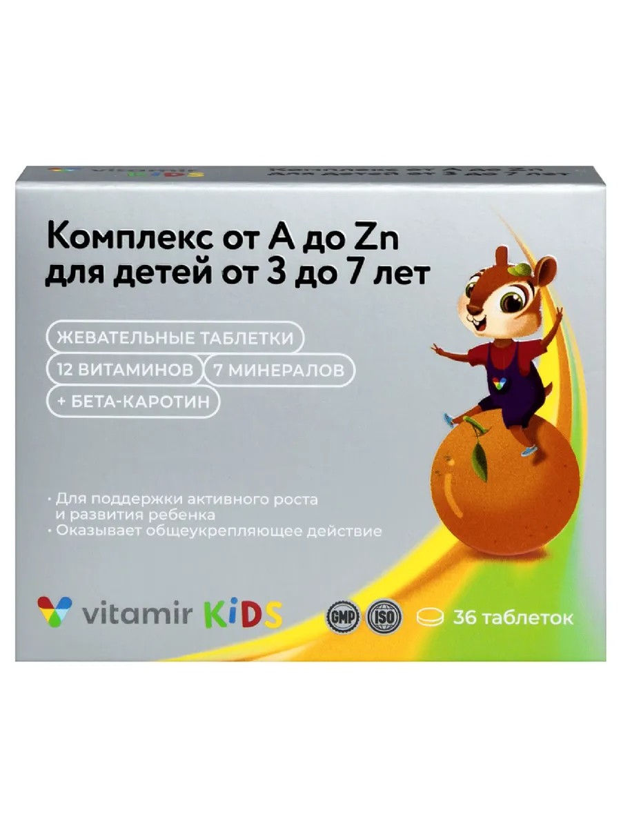 Витаминно-минеральный комплекс От А до Цинка разработан специально для детей в возрасте от 3 до 7 лет. Каждая таблетка весом 900 мг содержит тщательно подобранный набор витаминов и минералов, необходимых для полноценного роста и развития вашего ребенка.